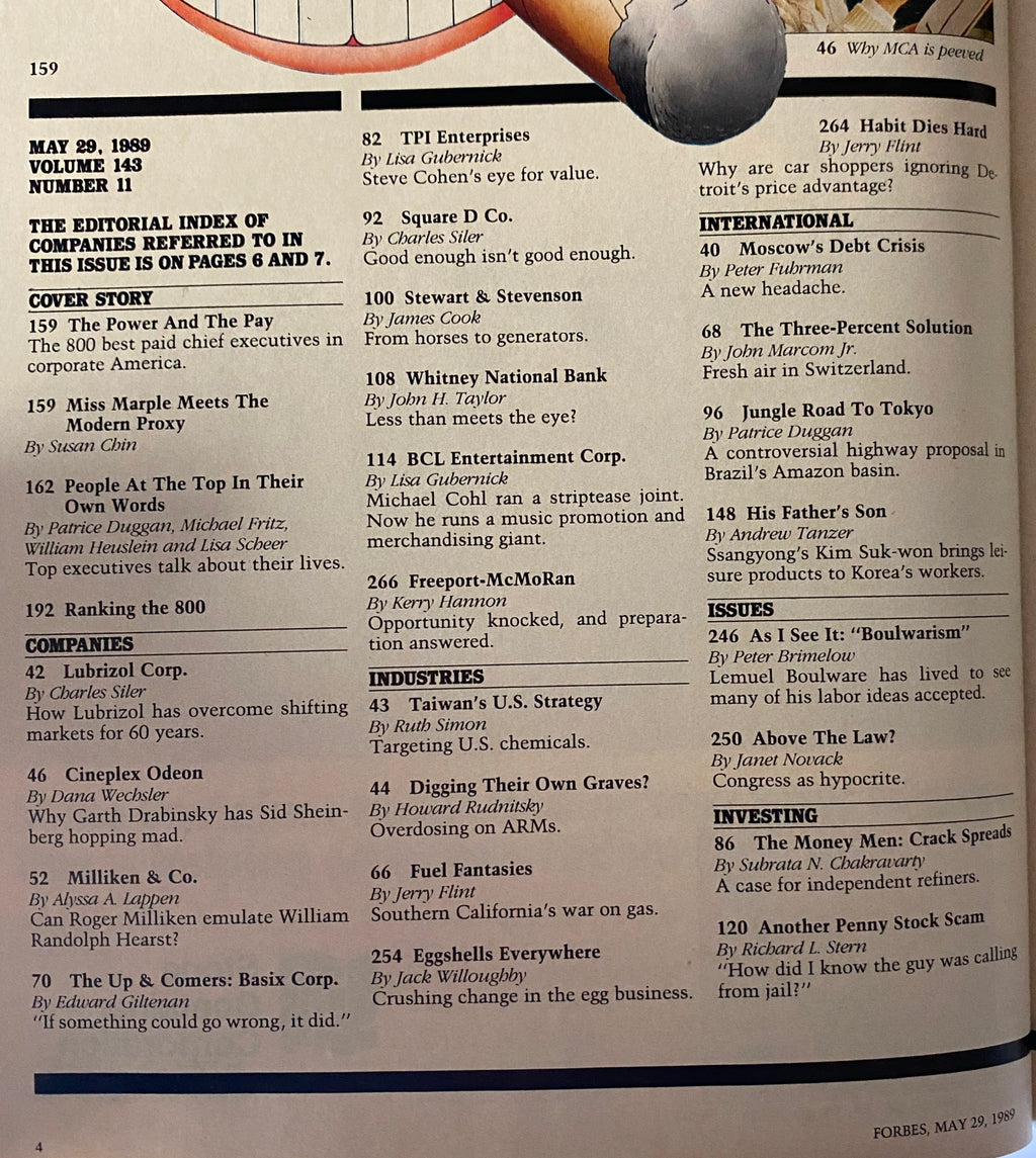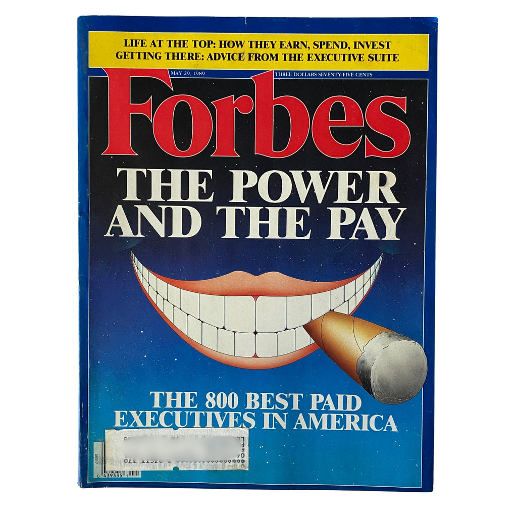 Discover a piece of history with this vintage issue of Forbes Magazine, dated May 29, 1989. Renowned for its in-depth analysis of the business landscape, this magazine features a compelling cover story titled "The Power and The Pay," which ranks the 800 best-paid chief executives in corporate America. The insights explored in this issue reflect the evolving dynamics of executive compensation during the late 1980s, a pivotal era in corporate governance.