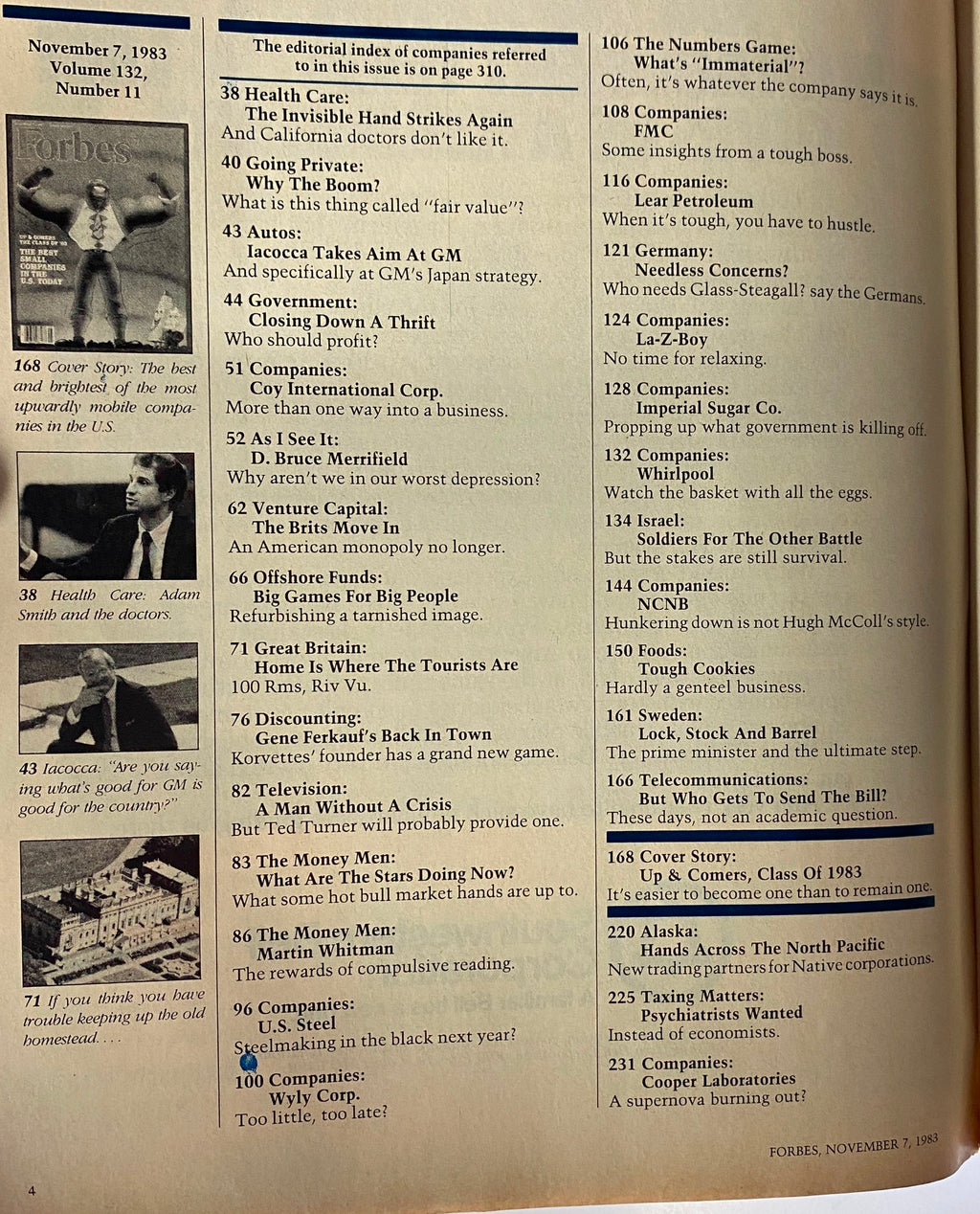 This vintage magazine features the iconic Forbes Magazine from November 7, 1983, known for its in-depth analysis of the best small companies in the U.S. and the trends shaping the economy during the mid-1980s. With the tagline "The Best Small Companies in the U.S. Today," this issue is a must-have for collectors and business enthusiasts alike.