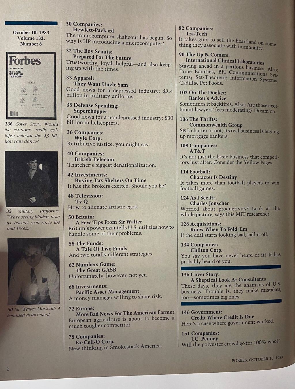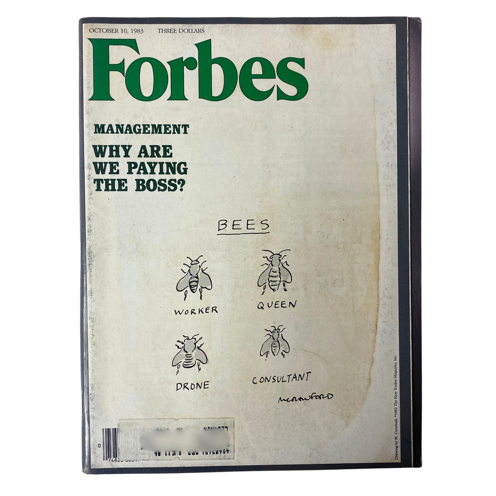 Discover the intriguing insights of the Forbes Magazine from October 10, 1983. This vintage issue delves into the controversial topic of executive remuneration with its thought-provoking cover story, "Would the economy really collapse without the $3 billion rain dance?". The article critically examines whether CEOs genuinely justify their substantial salaries or if changes are needed in the corporate compensation paradigm.