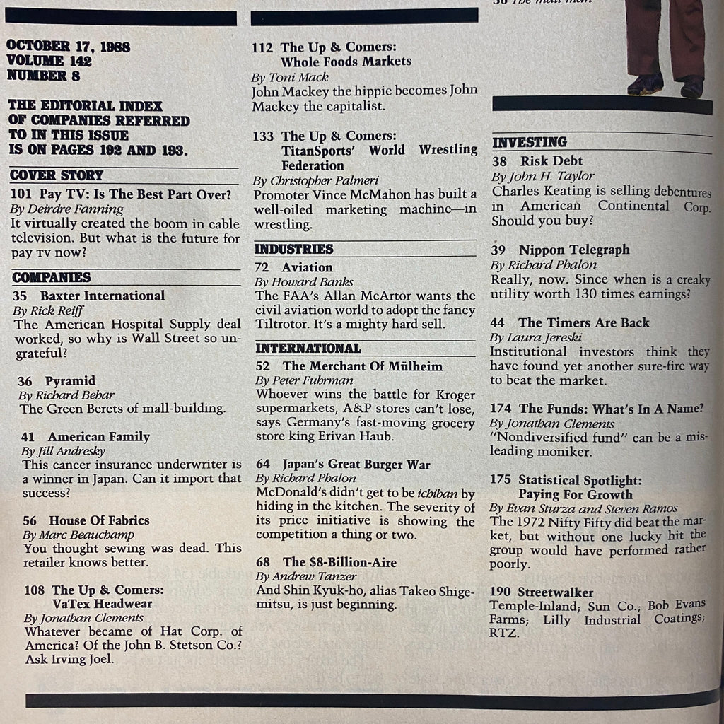 Within these pages, readers will find an intriguing exploration of corporate takeovers, emerging trends, and investment strategies that defined the late 1980s. This issue serves as a fascinating time capsule, presenting insights that remain relevant in today's media landscape. Collectors of vintage magazines will appreciate the depth of content and the historical context provided in this 1988 issue of Forbes.