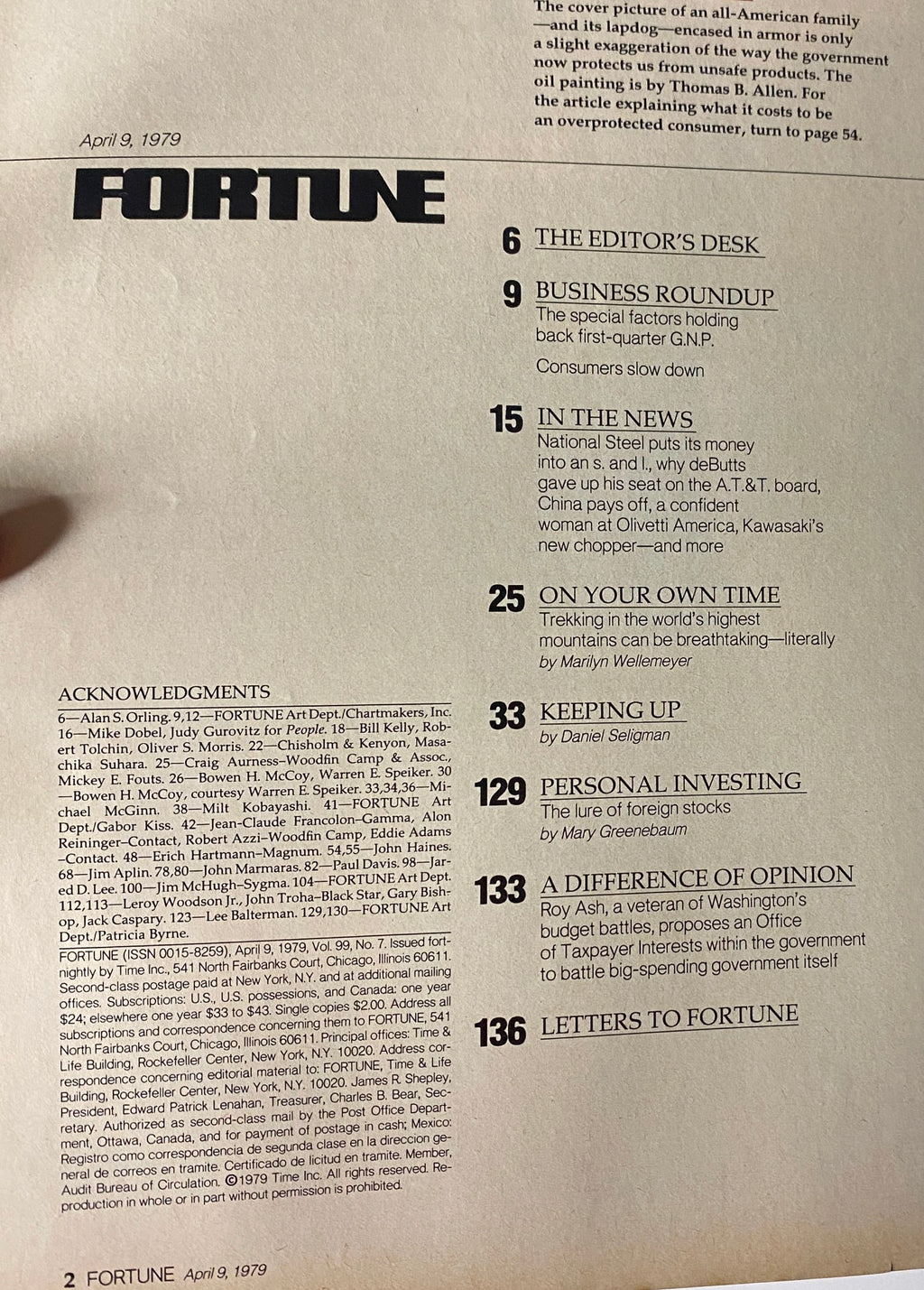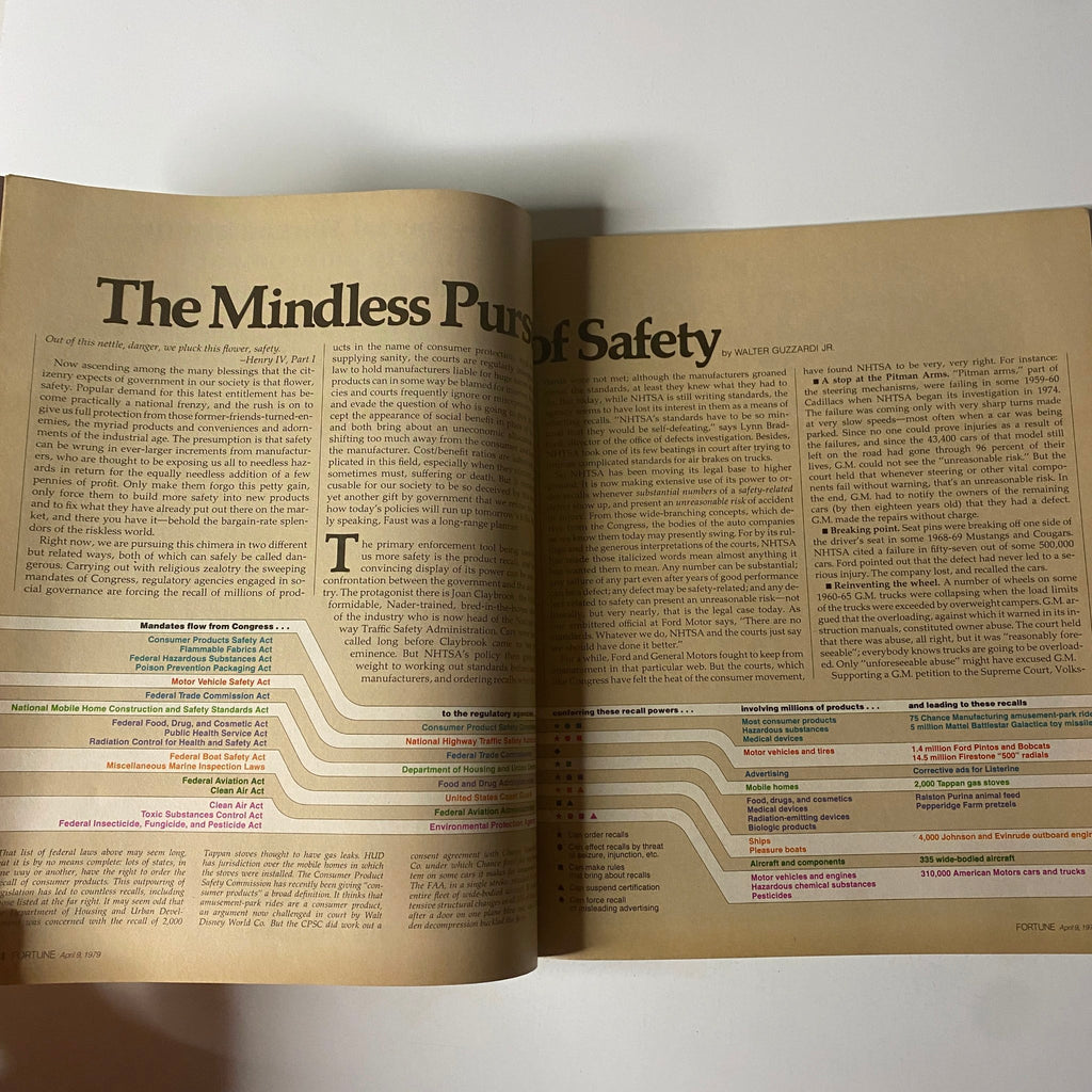 Discover a captivating piece of history with this vintage magazine from Fortune Magazine, dated April 9, 1979. This edition explores a crucial moment in consumerism, titled "The Overprotected Consumer." It includes engaging articles on the implications of consumer protection policies and scrutinizes the balance between safety regulations and individual rights.