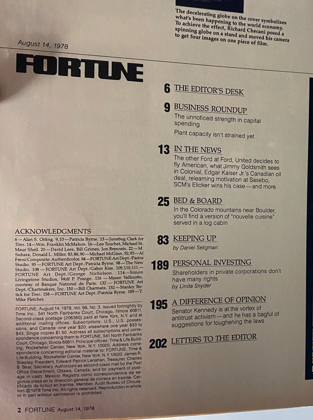 This Fortune Magazine vintage issue is significant for economists, collectors, and anyone interested in understanding economic trends during a pivotal time in history. It provides an invaluable look at the late 1970s, a period marked by inflation, oil crises, and a shift in corporate strategies. By analyzing investment patterns and corporate decision-making, this magazine offers readers a comprehensive view of how these elements shaped the global marketplace.