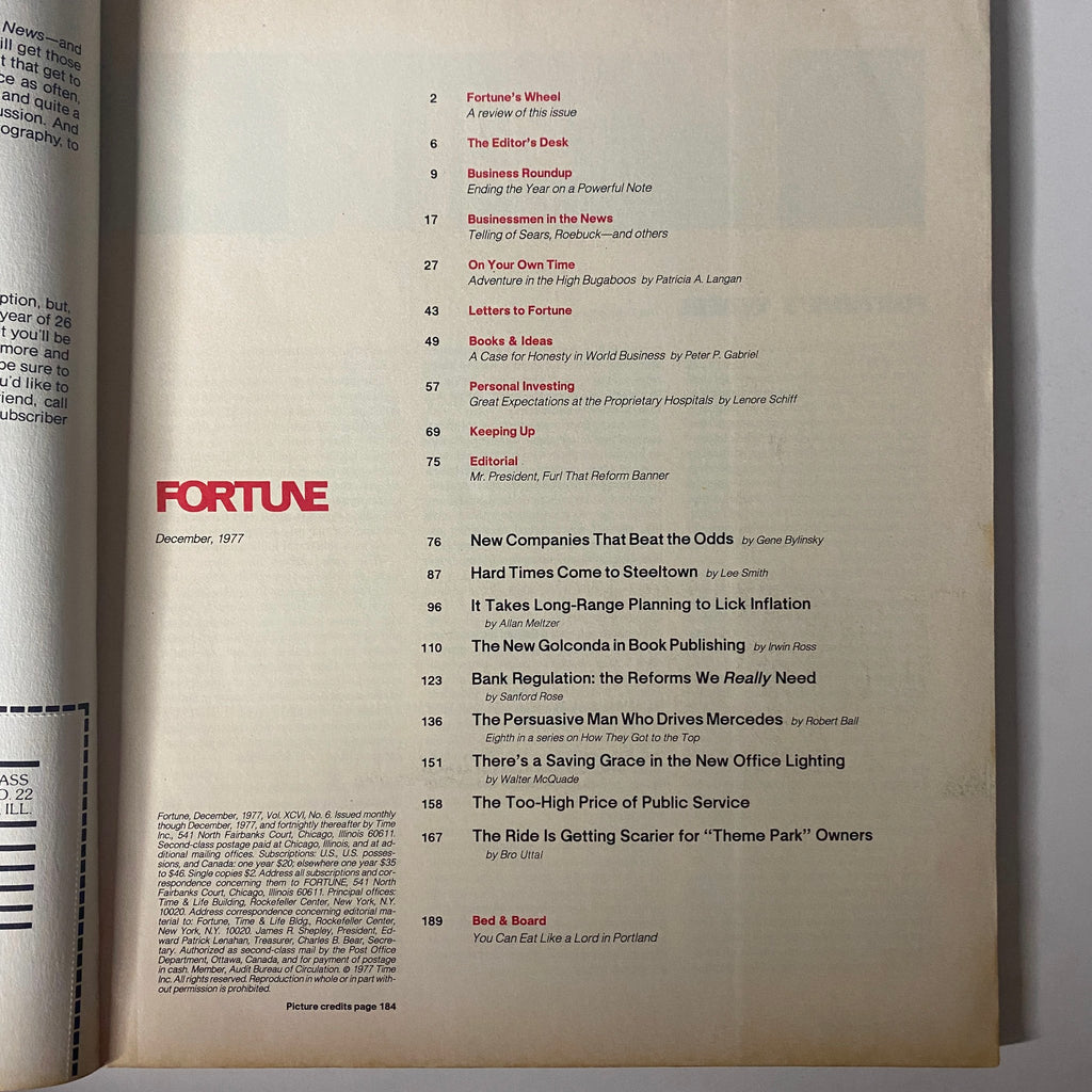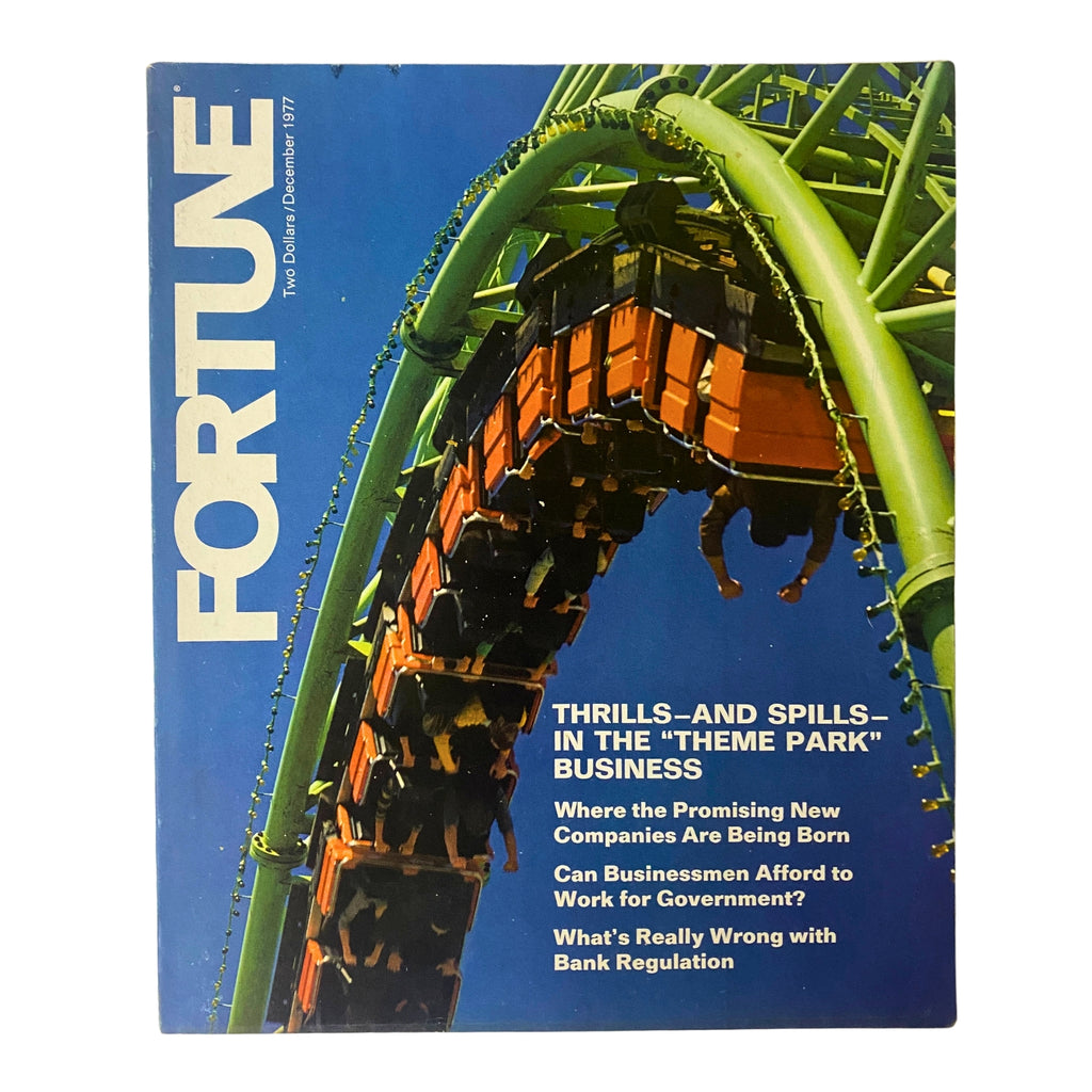 This December 1977 issue of Fortune Magazine is a captivating piece of vintage publishing, perfect for collectors and enthusiasts of vintage magazines. It features the outstanding cover story, "Thrills & Spills: The Theme Park Business," providing an in-depth look into the rapidly evolving amusement park industry during the late 1970s, an era defined by growth and innovation in entertainment. This magazine represents a significant moment in business history, capturing the burgeoning interest in family entertainment and the economics surrounding theme parks.