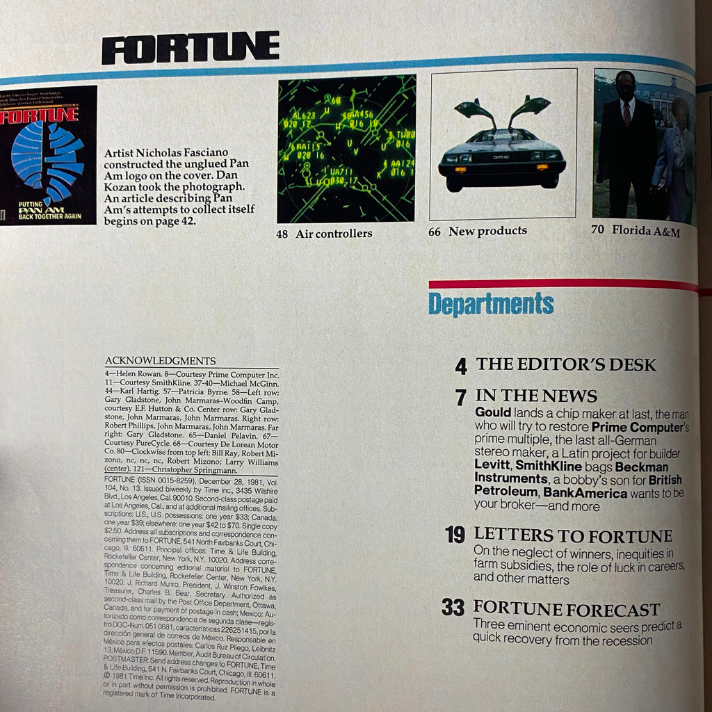 - Notable Articles: Insightful articles such as "The Unglued Pan Am Logo," a detailed examination of the airline's financial struggles, and "Fortune Forecast," predicting a recovery from the recession.