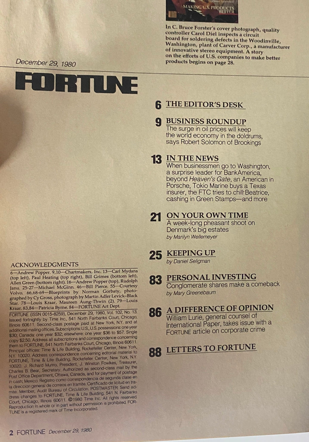 This Fortune Magazine vintage issue is an extraordinary find for collectors, economists, and investors interested in the dynamics of corporate America, economic policy, and industrial innovation during the 1980s.