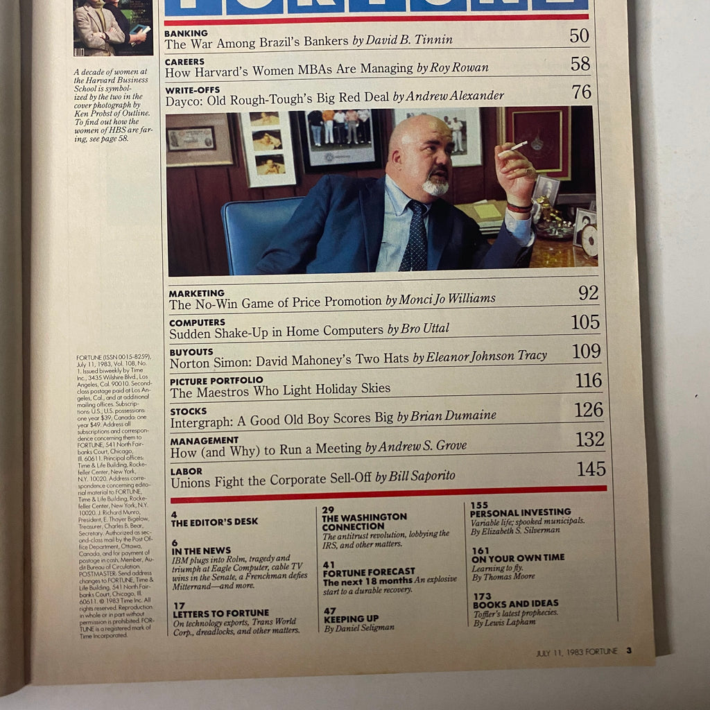 This vintage issue of Fortune Magazine, dated July 11, 1983, is a remarkable collectible for those fascinated by business, finance, and management. The magazine explores significant financial topics from the early '80s, with insightful articles that reflect the economic climate of the time. Notable features include a comprehensive analysis of the competitive landscape in Brazilian banking, a look into the career paths of Harvard's female MBA graduates, and the evolving dynamics of the home computer industry.