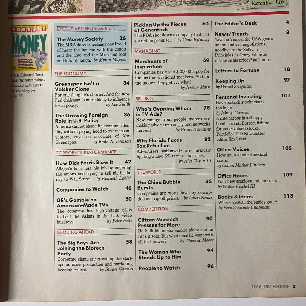 - Executive Life / Cover Story: The Money Society – A revealing look at the new corporate elite of the 1980s.