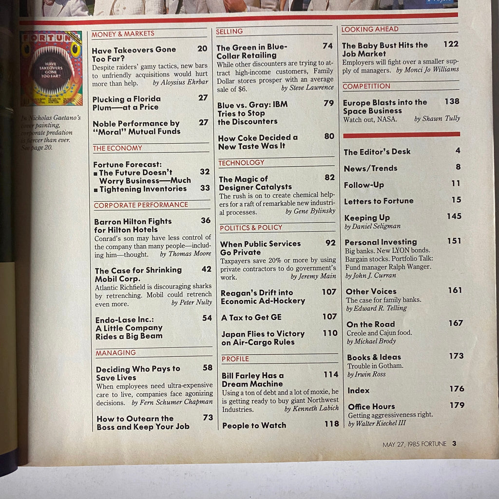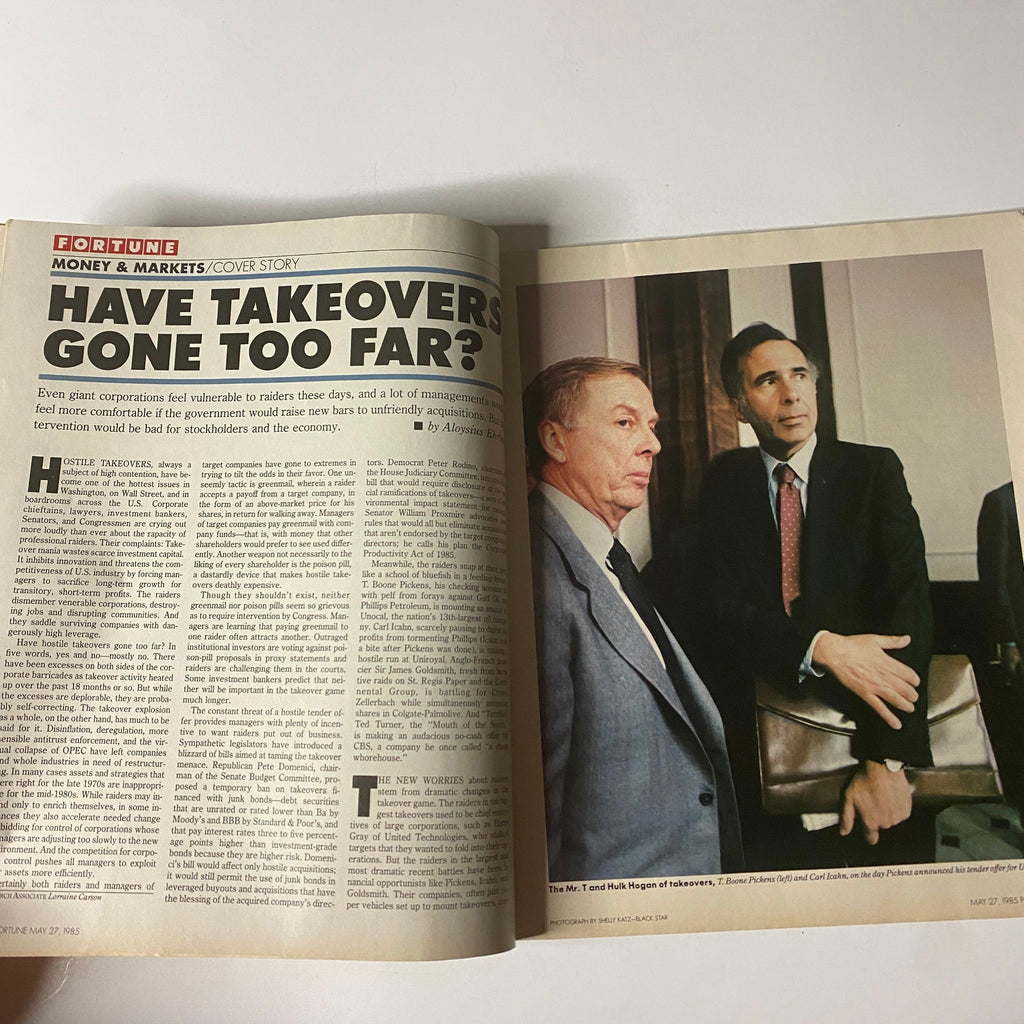 This remarkable vintage magazine issue of Fortune Magazine, dated May 27, 1985, dives into the heart of corporate America during a pivotal era of financial evolution. With the compelling cover story titled “Have Takeovers Gone Too Far?” by Aloysius Ehrbar, this vintage issue explores the fiercely debated corporate takeover frenzy of the mid-1980s, questioning whether aggressive acquisition strategies are beneficial or damaging for businesses and the economy.