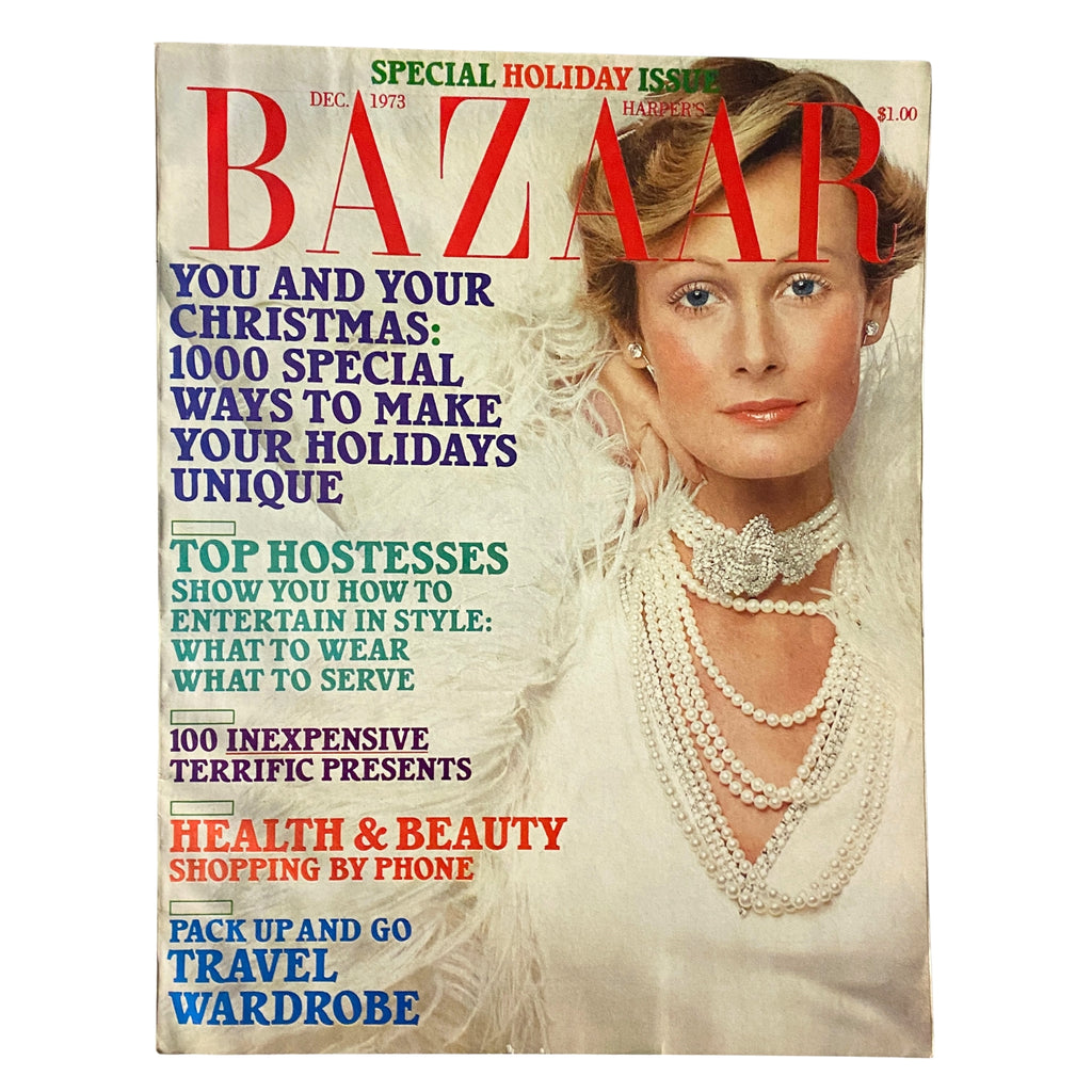 Step back in time with the Harper's Bazaar Magazine from December 1973, featuring a stunning cover by the acclaimed Pam Suthern. This vintage issue of the iconic fashion publication captures the essence of early 1970s style and elegance, making it a must-have for collectors and vintage magazine enthusiasts.