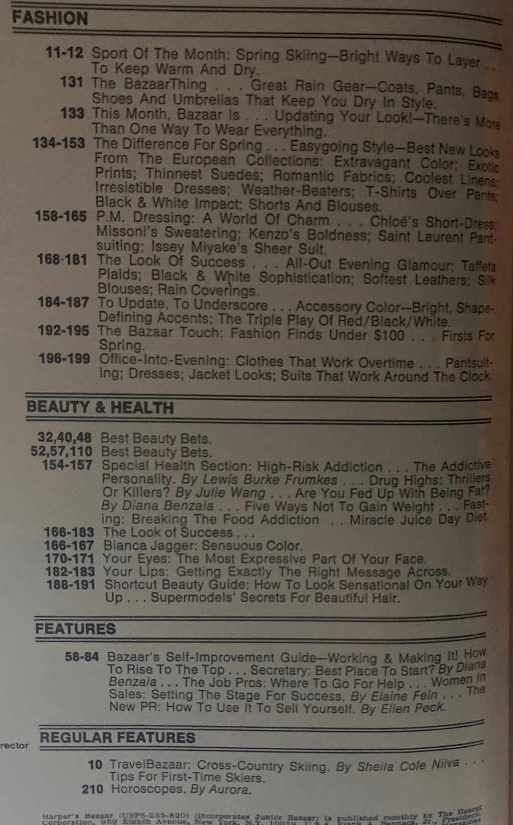 - Unique features on makeup and health, such as "Best Beauty Bets" and a special section on high-risk addiction, offering a glimpse into the social conversations of the time.