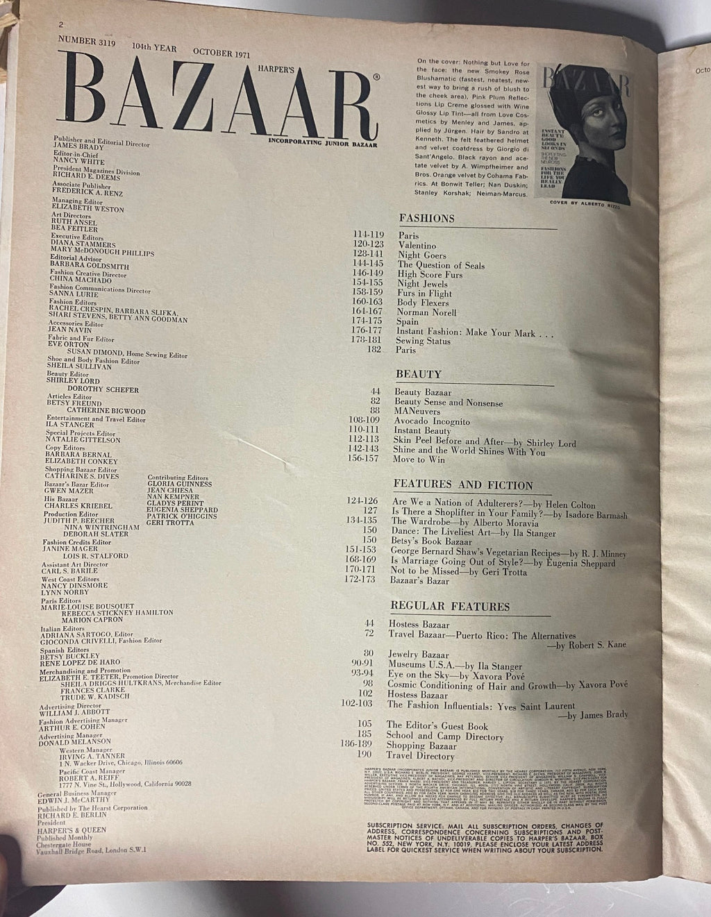 Harper's Bazaar Magazine — October 1971 — Shine and the World Shines With You Cover (No Label)