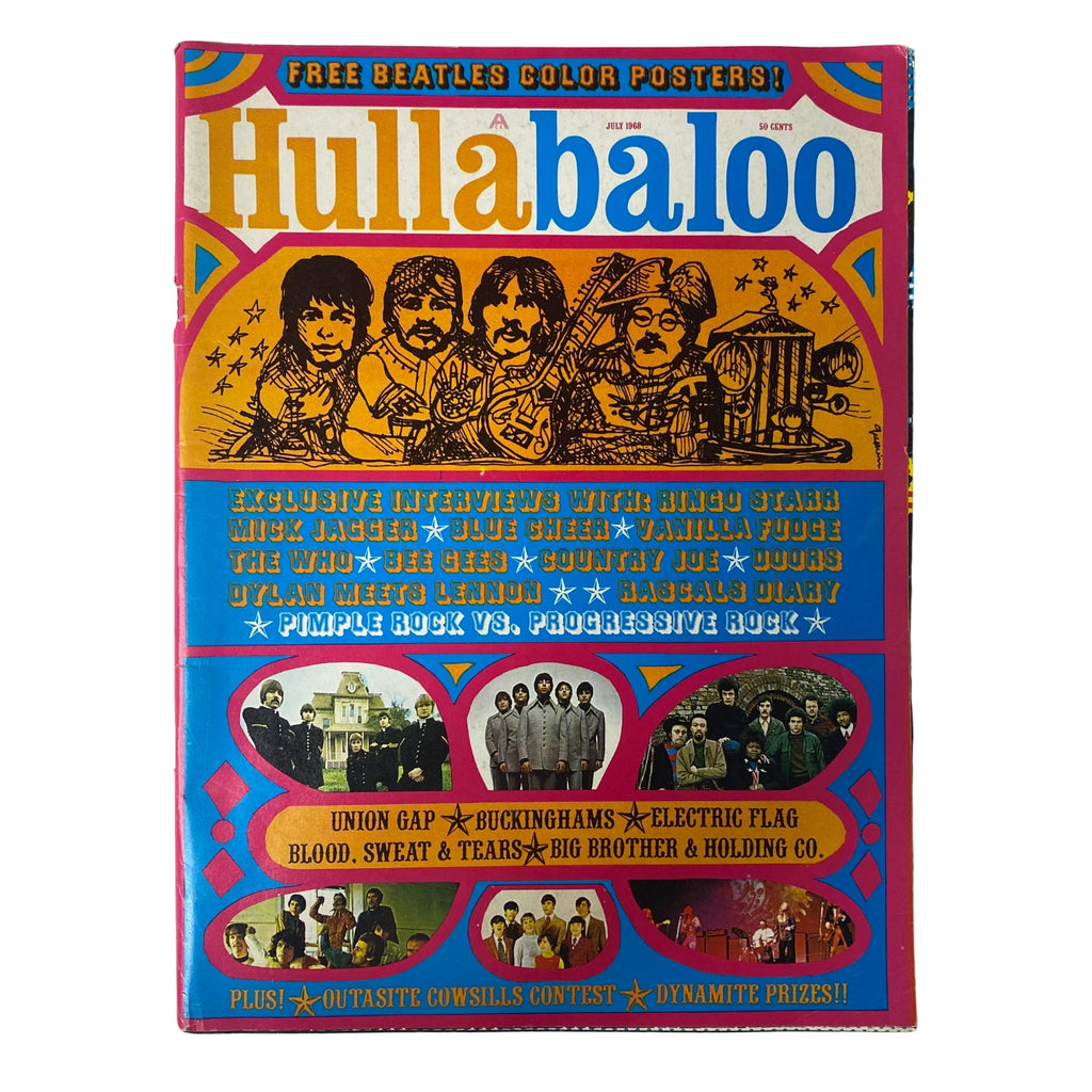 This July 1968 issue of Hullabaloo Magazine (Vol. 3, No. 5) is a vintage rock collectible featuring The Beatles in full color with exclusive posters and pin-ups of John, Paul, George, and Ringo. A must-have for Beatles fans, this issue also includes features on many of the era’s biggest names—from The Rolling Stones to Janis Joplin and Big Brother and the Holding Company—making it a snapshot of the late-60s music revolution.