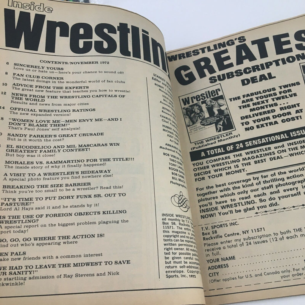 Inside Wrestling Magazine November 1972 Featuring Bruno Sammartino vs Morales