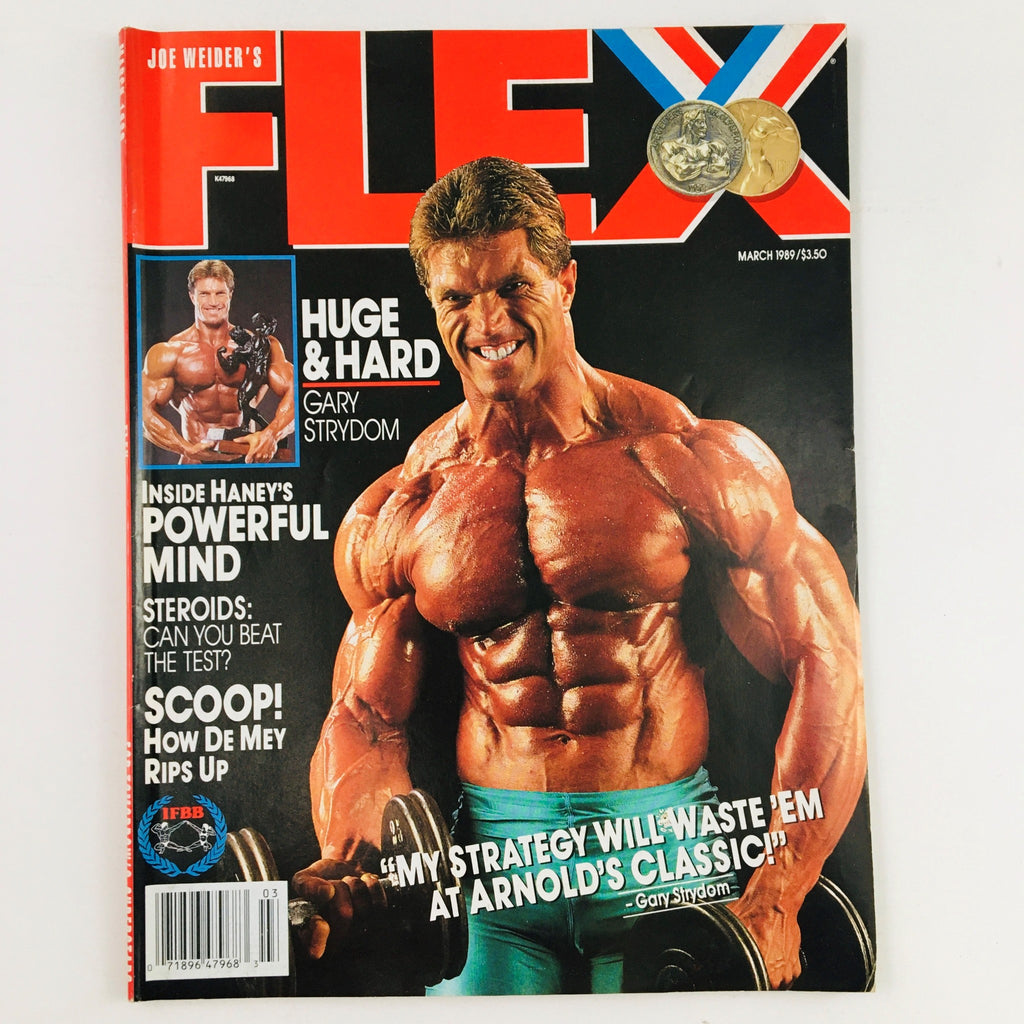 Discover a piece of bodybuilding history with this vintage magazine, Joe Weider's Flex Magazine, from March 1989 featuring the legendary bodybuilder Gary Strydom on the cover. A true gem for collectors and fans alike, this issue not only showcases the impressive physique of Strydom but also encapsulates the vibrant culture of bodybuilding during the late 80s.