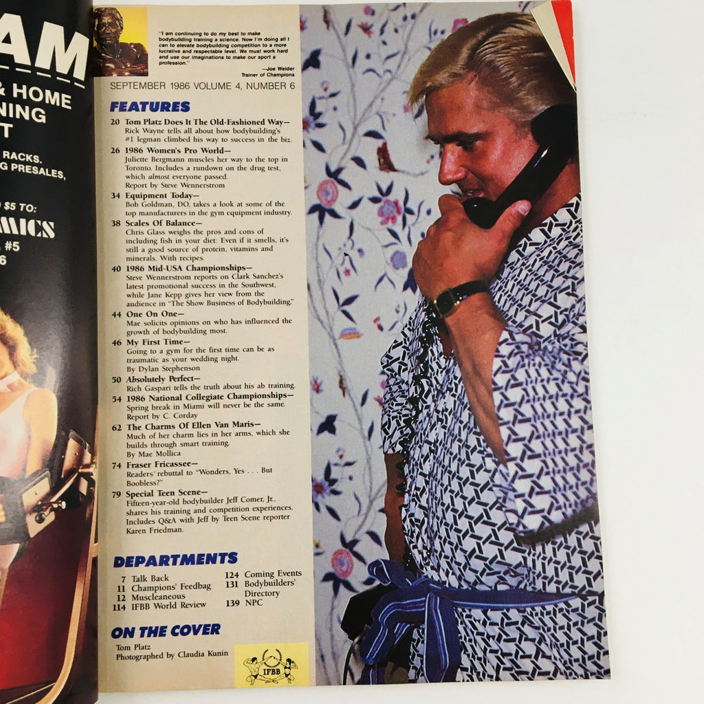 Explore a piece of bodybuilding history with Joe Weider's Flex Magazine from September 1986, featuring the iconic bodybuilder Tom Platz on the cover. This collectible vintage magazine not only showcases one of the greats in bodybuilding but also serves as a time capsule reflecting the fitness culture of the mid-1980s.