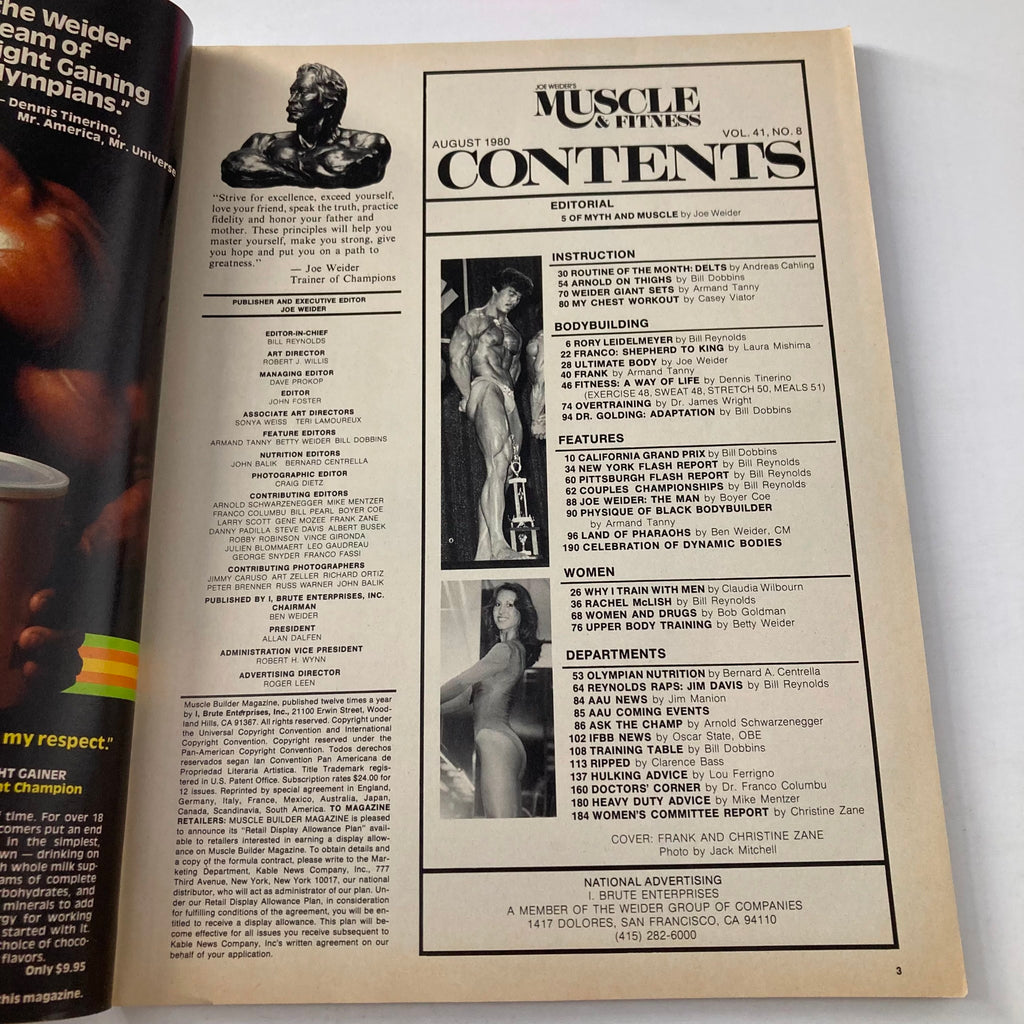 Joe Weider's Muscle & Fitness Magazine August 1980 Frank and Christine Zane