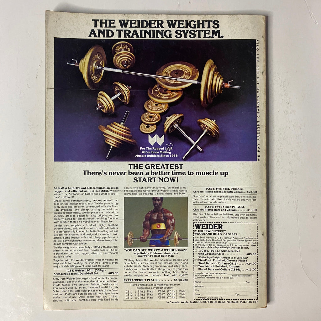 This issue features bodybuilding icons such as Frank Zane, Arnold Schwarzenegger, Mike Mentzer, Franco Columbu, Boyer Coe, and Samir Bannout, alongside contributions from pioneers like Joe and Betty Weider. A true collectible for fans of classic bodybuilding and vintage fitness history.
