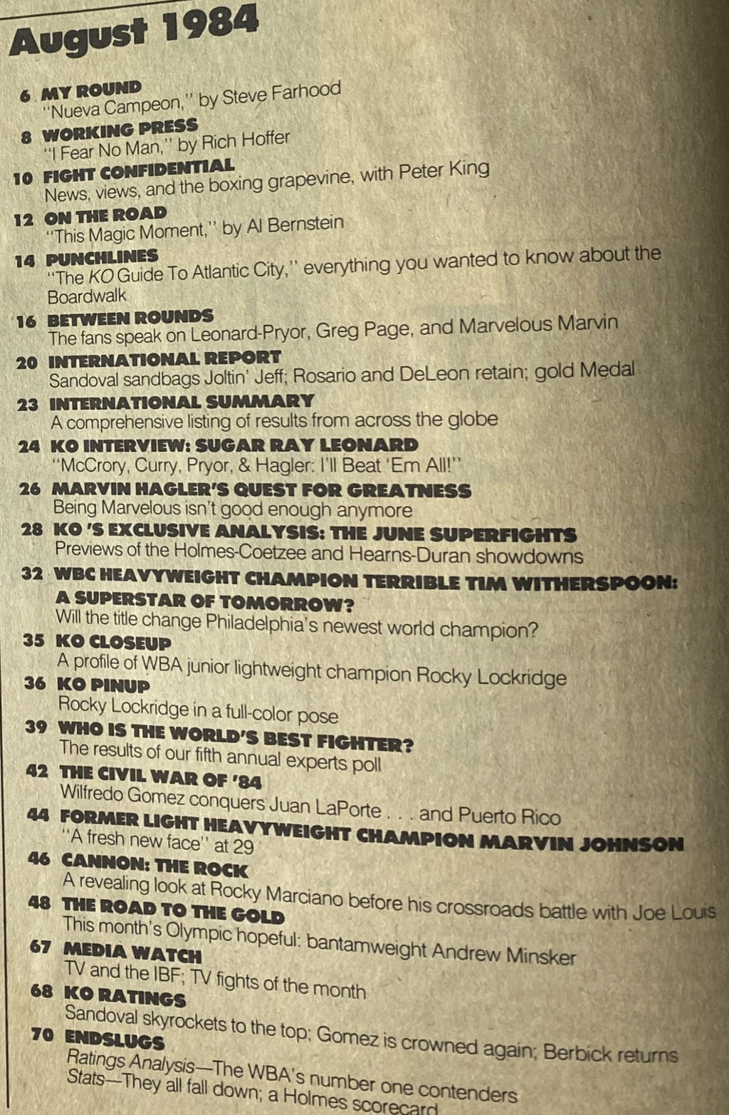 This issue is a must-have for collectors of 1980s boxing history, showcasing the rise of Tim Witherspoon, the dominance of Marvin Hagler, and the legendary matchups that defined the decade.
