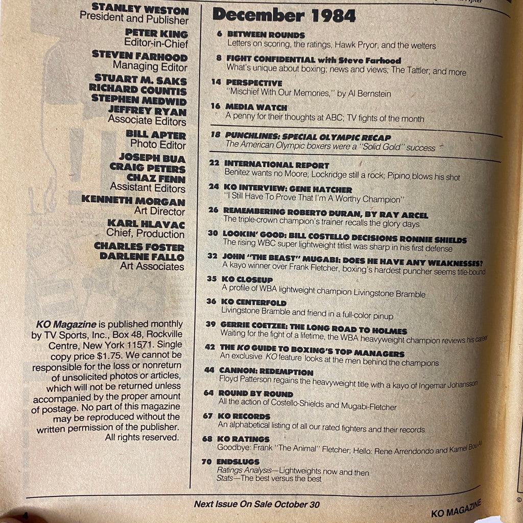 KO Boxing Magazine – December 1984 – John “The Beast” Mugabi Cover (No Label)