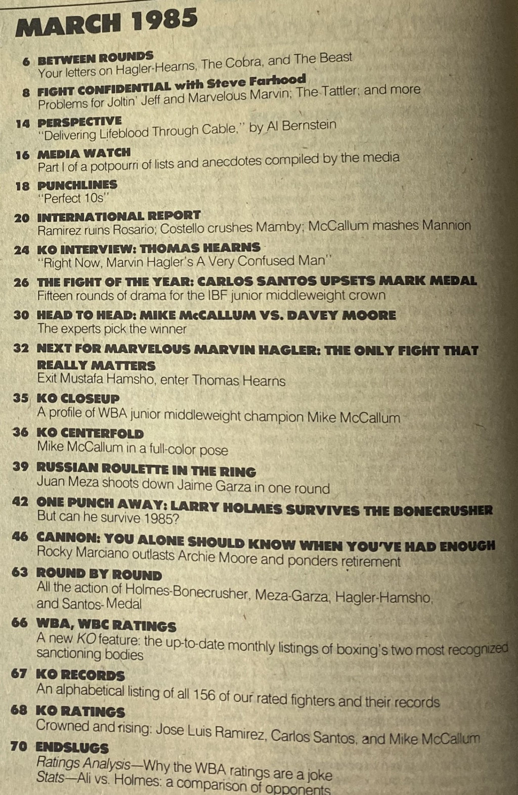 This issue is a must-have for fans of Hagler, Hearns, and 1980s boxing history, offering rare insight into the rivalries, upsets, and title clashes that defined the golden era of the sport.