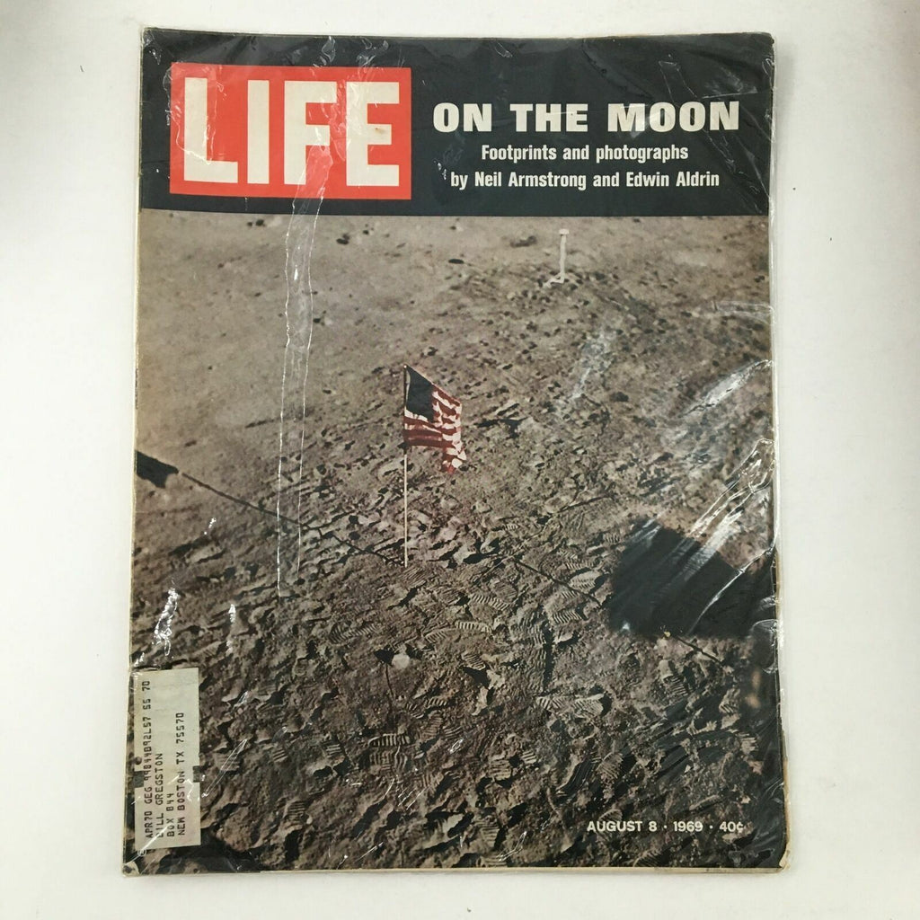 Our Life Magazine from August 8, 1969 is in good condition, bearing the marks of its journey through time. You’ll notice a small address label on the front, a testament to its history, along with minor wear throughout the magazine, which only adds character. To protect this special issue, it comes sealed in plastic, ensuring it remains in excellent condition for years to come.