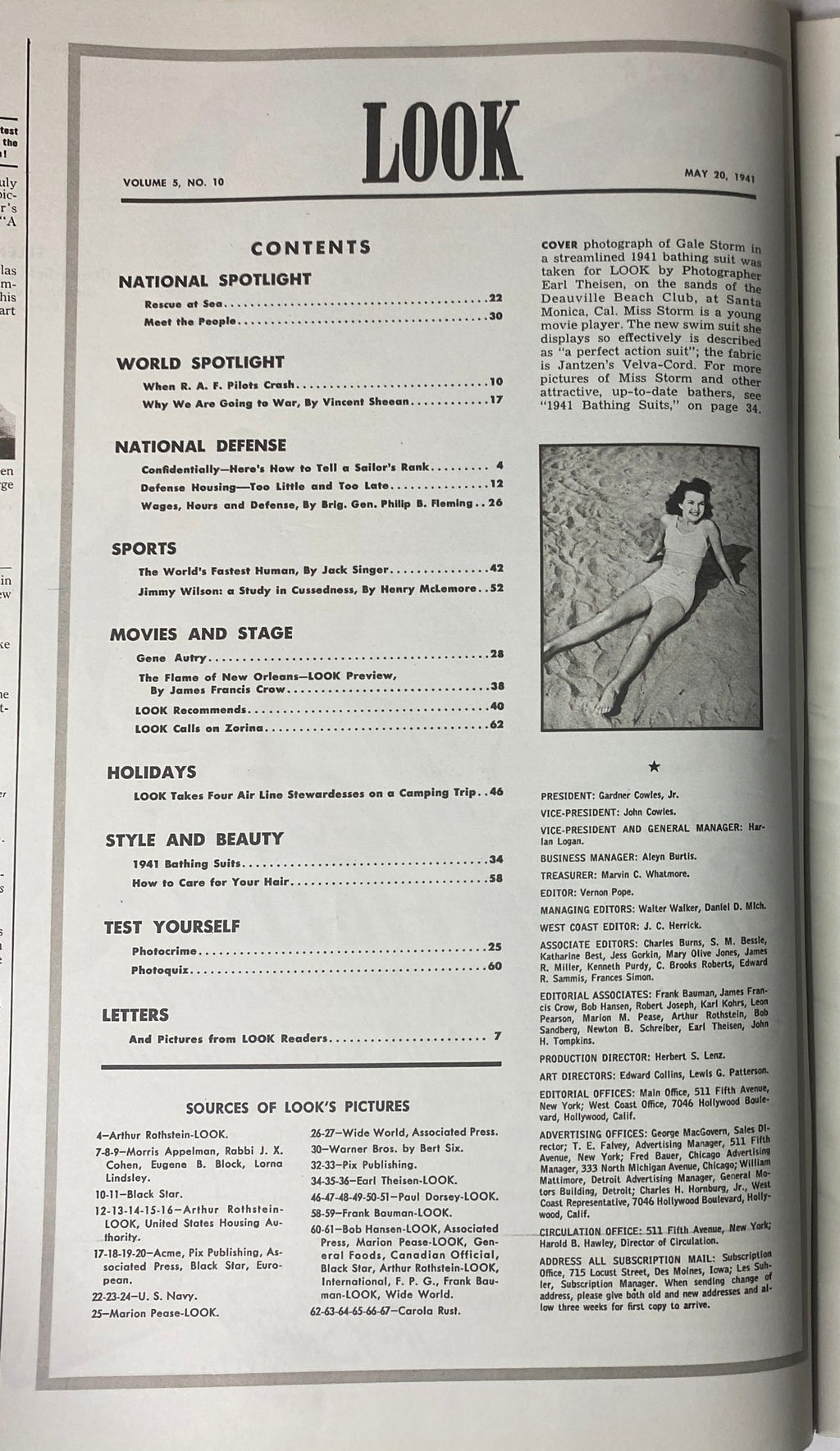 Look Magazine – May 20, 1941 – Gale Storm Cover by Earl Theisen – No Mailing Label – Good Condition