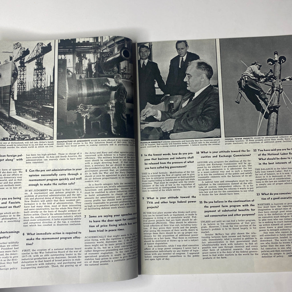 A notable feature in this issue includes a Q&A-style article with President Roosevelt, addressing key topics such as: