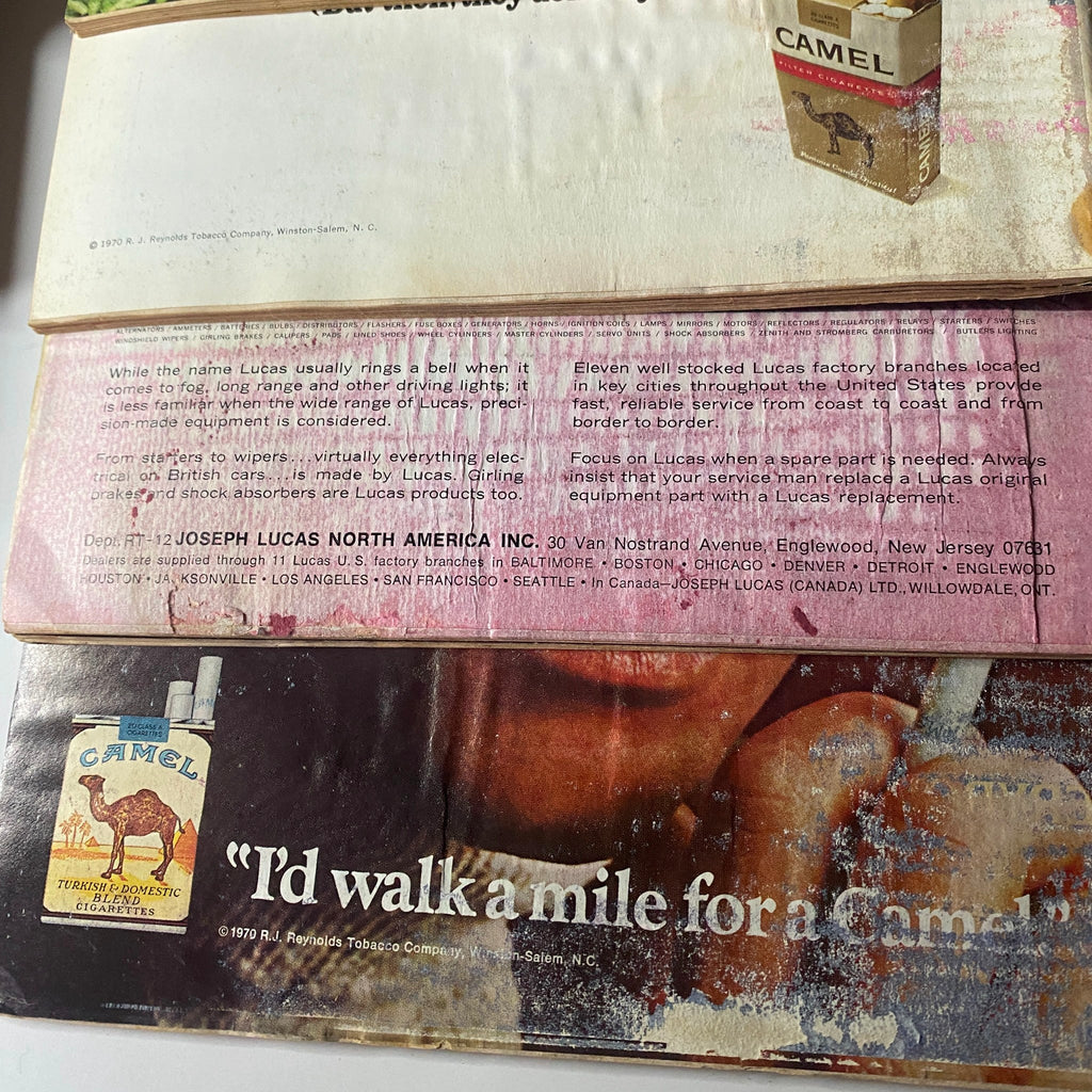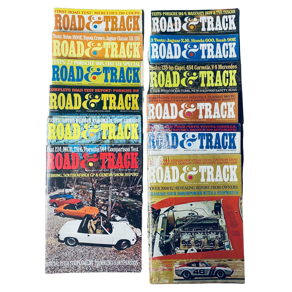 This is a complete set of Road & Track magazines from January through December 1970, covering a dynamic year in the world of automobiles—from road tests and racing reports to engineering insights and period advertisements.