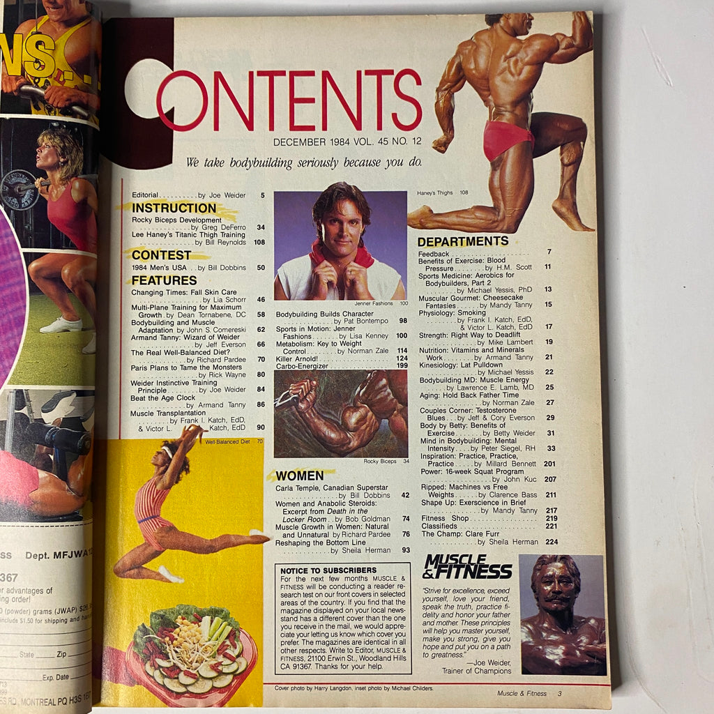 This December 1984 issue of Muscle & Fitness features Arnold Schwarzenegger on the cover, highlighted by the feature article “Killer Arnold!” Inside, readers will find in-depth training instruction, competition reports, bodybuilding science, and unique profiles that capture the sport’s mid-1980s golden era. The issue also covers women’s bodybuilding, anabolic debates, diet and metabolism, and classic Weider training principles.