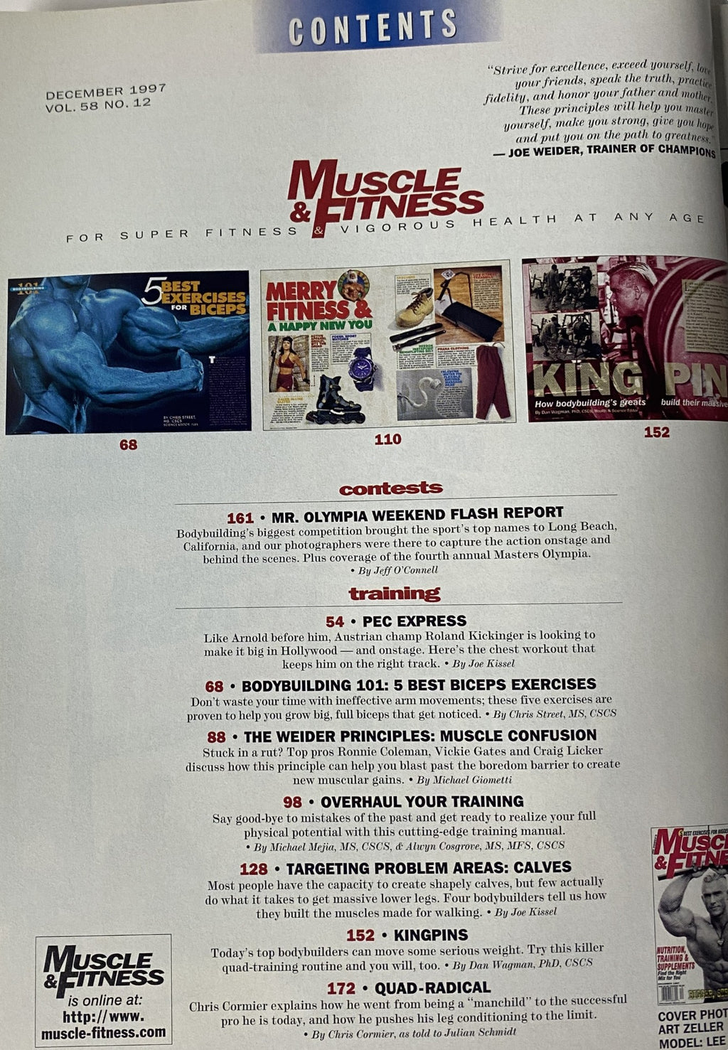 Muscle & Fitness Magazine – December 1997 (Vol. 58, No. 12) – Lee Priest Cover – No Label – Very Good Condition