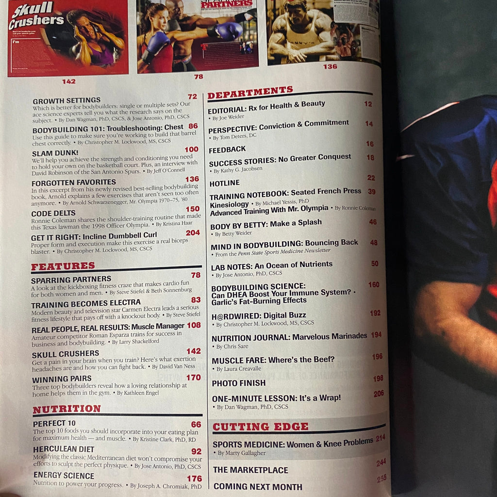 This issue highlights “Girl Power!”, a superfeature focused on women in bodybuilding and fitness, along with profiles, training programs, nutrition strategies, and expert advice.