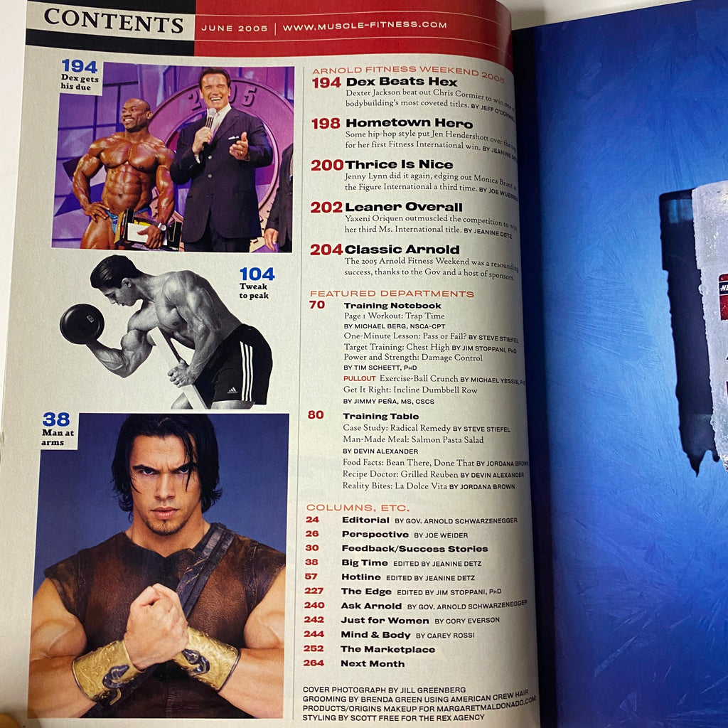 This June 2005 issue of Muscle & Fitness features Brian Wiefering on the cover and is packed with fat-burning specials, pro-level training advice, nutrition strategies, and full coverage of the 2005 Arnold Fitness Weekend.