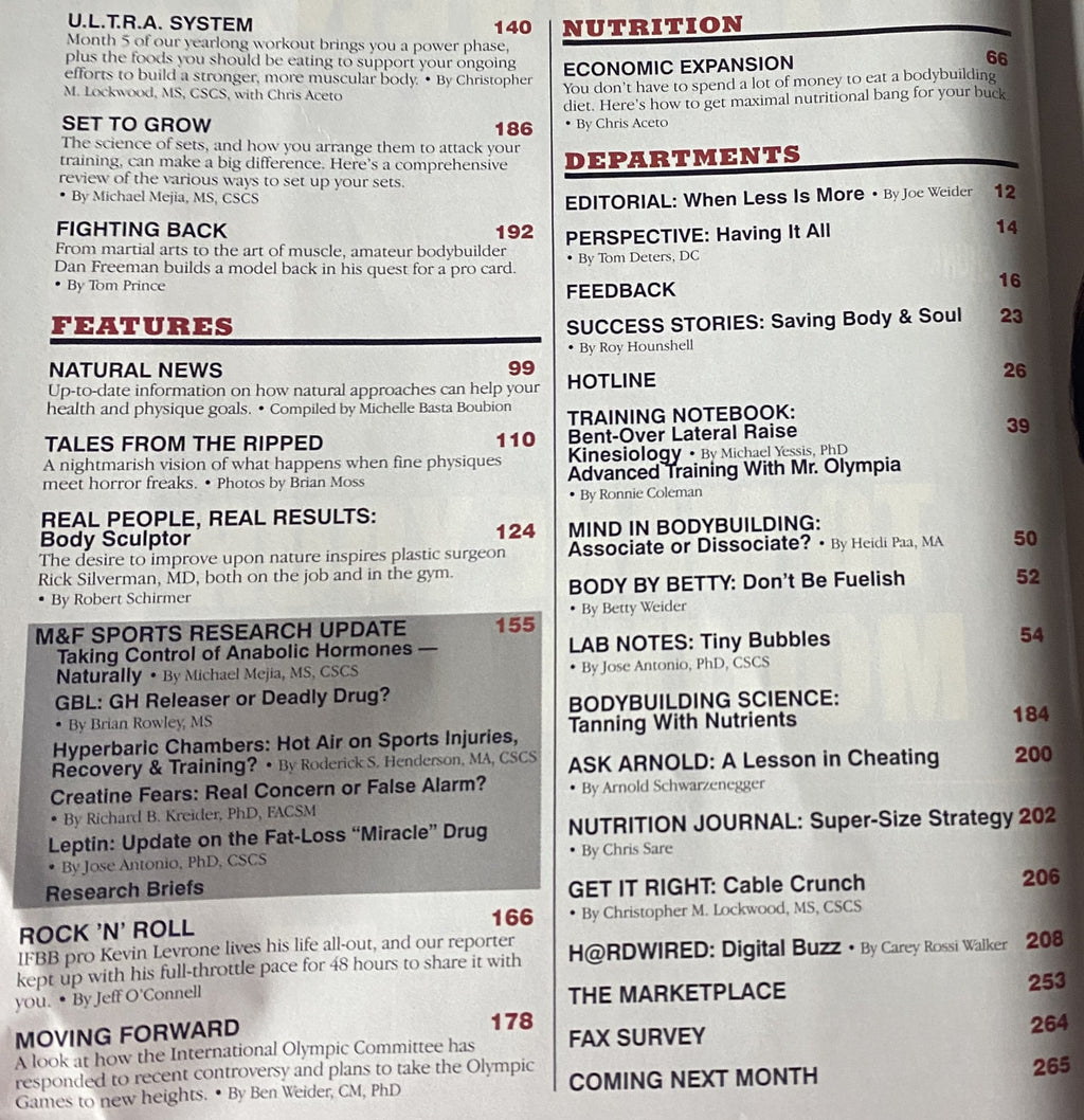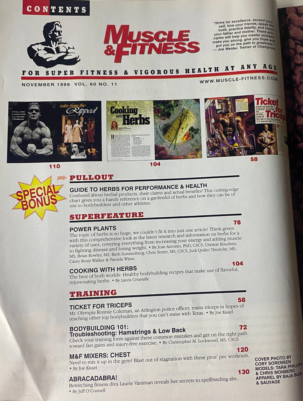 This edition features a Superfeature on herbs and natural performance aids, with comprehensive training, nutrition, and bodybuilding coverage.