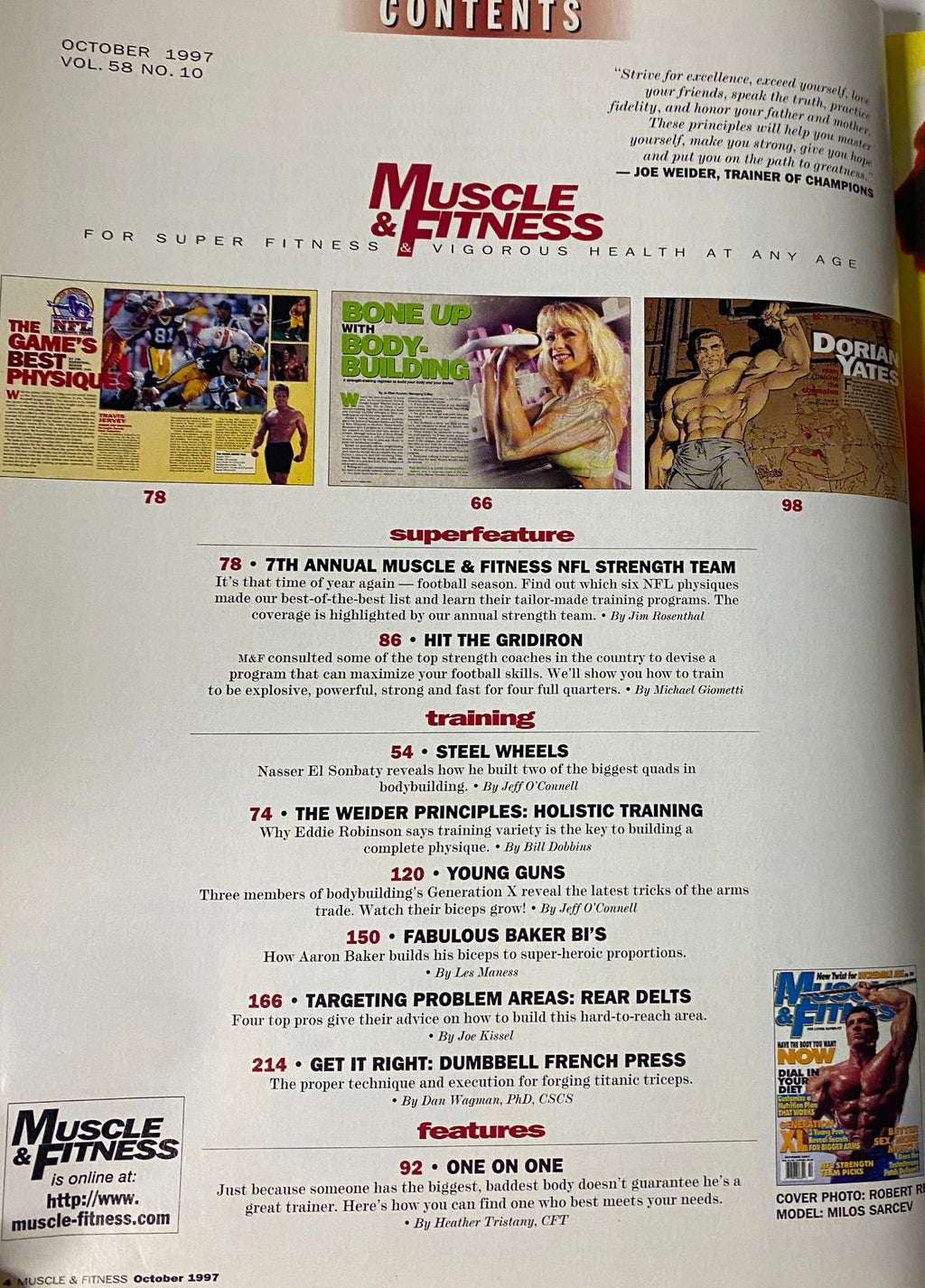 Muscle & Fitness Magazine – October 1997 (Vol. 58, No. 10) – Milos Sarcev Cover – No Label – Very Good Condition