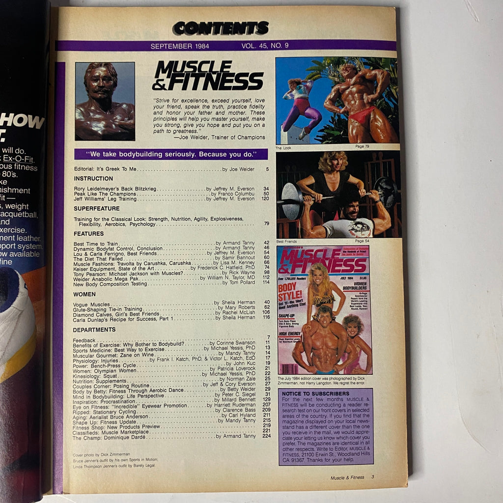 This September 1984 issue of Muscle & Fitness features Andreas Cahling on the cover, highlighting the classical look of bodybuilding and its blend of strength, symmetry, and artistry. With in-depth instruction, competition-inspired features, nutrition strategies, and profiles of some of the sport’s biggest names, this issue captures bodybuilding as both a science and an aesthetic pursuit. Standouts include Franco Columbu’s peaking strategies, Samir Bannout’s candid article “The Diet That Failed,” Rachel McLish on calf development, and Lou & Carla Ferrigno’s friendship profile.