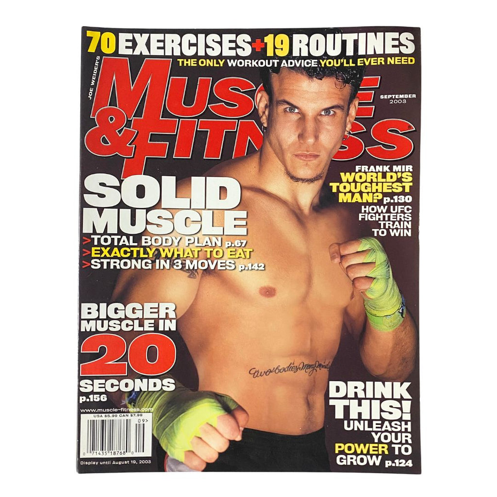 This collectible issue of Muscle & Fitness Magazine showcases the September 2003 edition, featuring the incredible MMA fighter Frank Mir on the cover. With a dynamic image that captures the essence of fitness and strength, this vintage magazine is a must-have for enthusiasts and collectors alike.