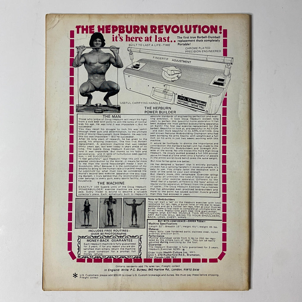 This issue is especially noteworthy for its feature on Dave Prowse — Britain’s strongman turned Darth Vader — and the spotlight on Andreas Cahling’s nutrition strategies. With training systems, women’s bodybuilding features, and rare insights into Frank Zane’s film project, it remains a standout collectible for bodybuilding historians and vintage magazine enthusiasts.