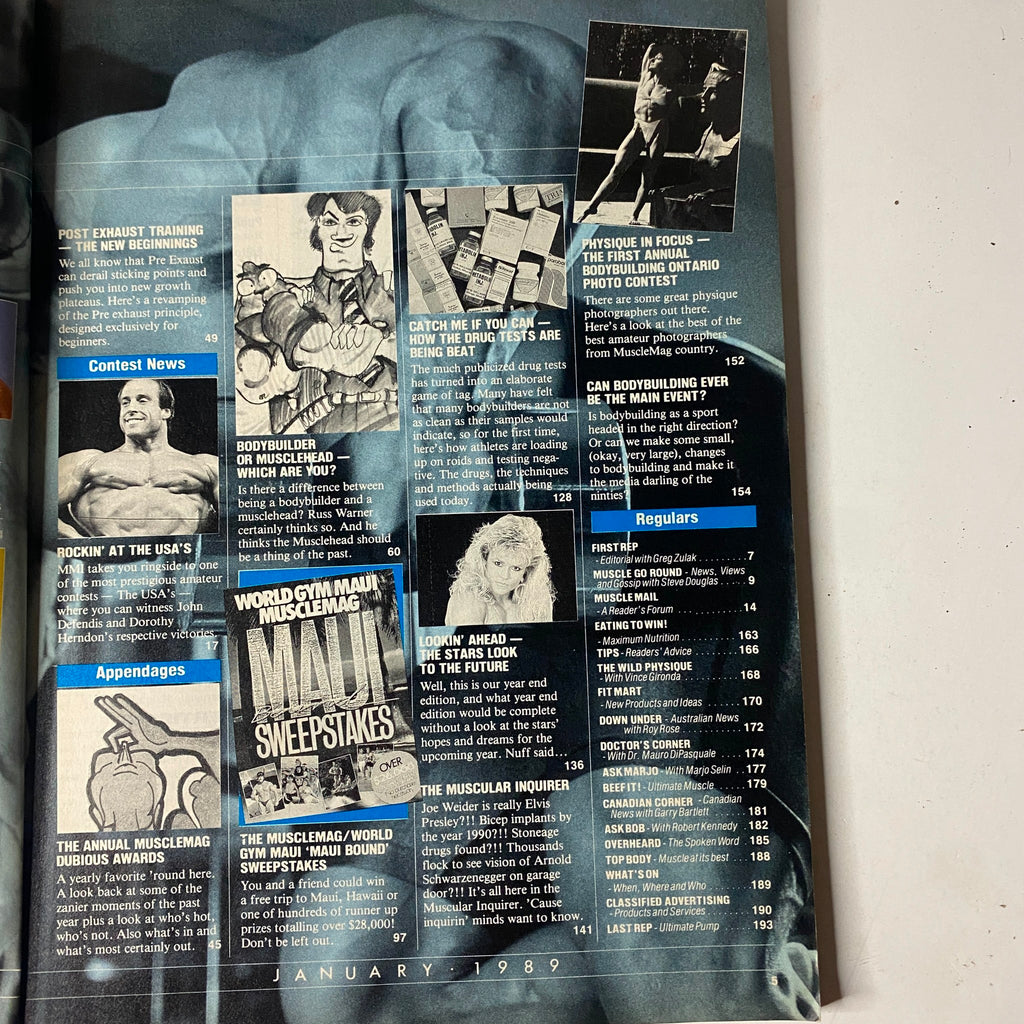 This December 1988 issue of MuscleMag International features Gary Strydom and Cameo Kneuer. A classic collectible from the late 1980s, it offers a mix of editorial commentary, training advice, nutrition strategies, industry news, and bodybuilding insights from some of the sport’s most iconic figures.