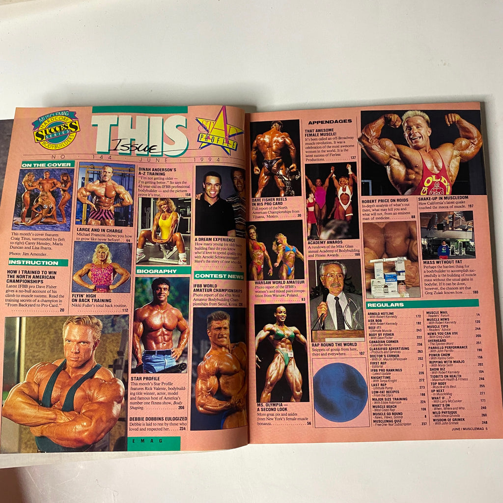 MuscleMag International Magazine June 1994 No. 144 Craig Titus, Carey Hensley VG No Label