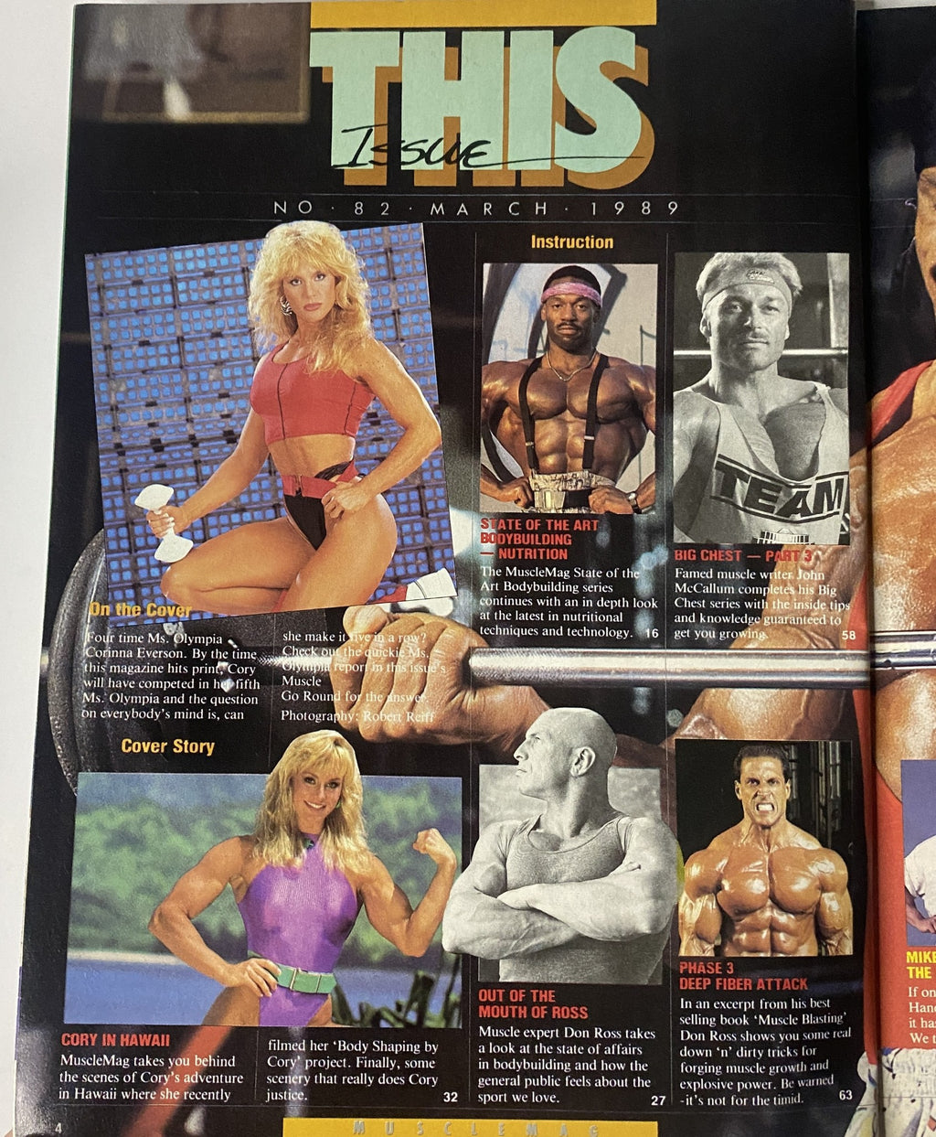 MuscleMag International Magazine – March 1989, Issue No. 82 – Featuring Corinna Everson (No Label, VG Condition)