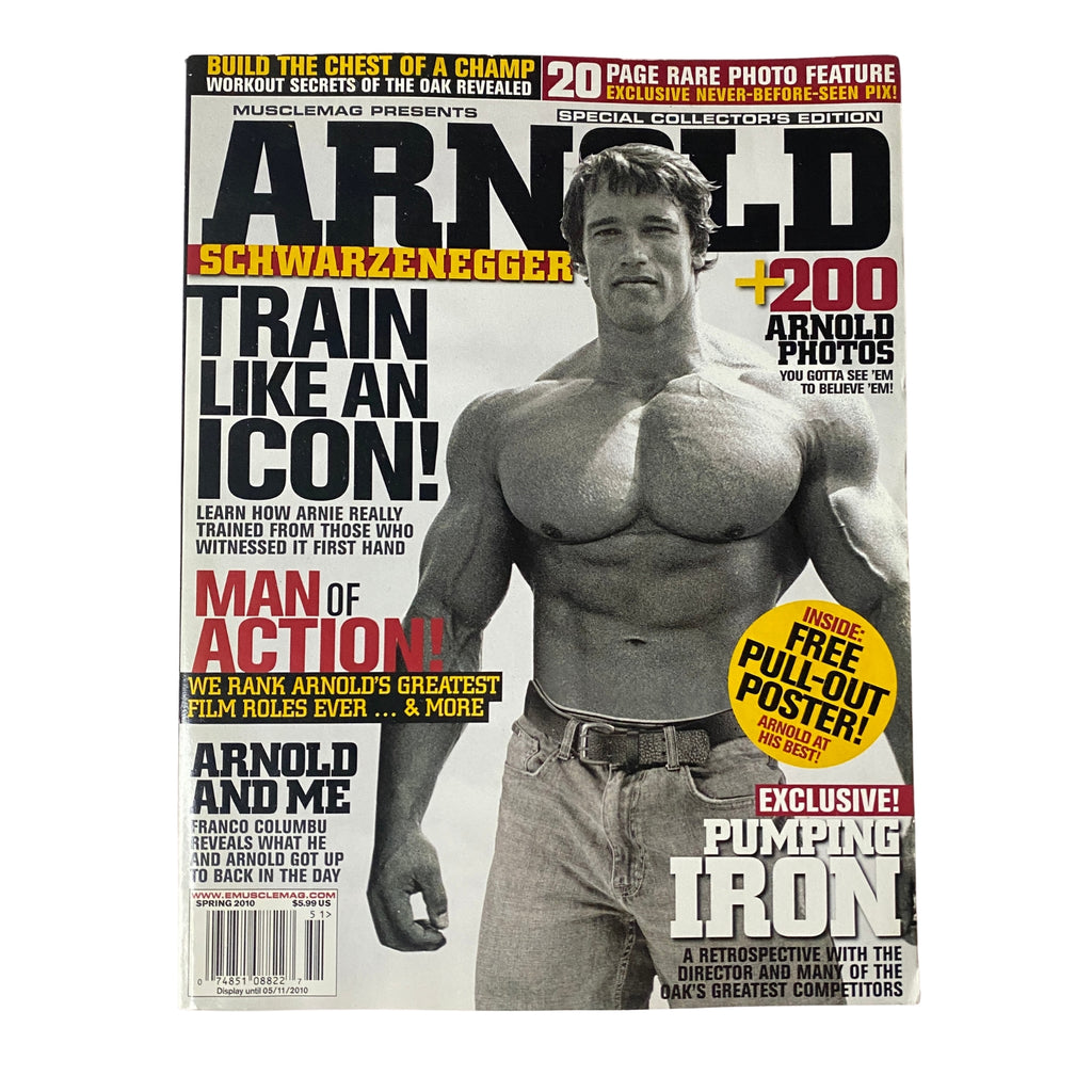 This special MuscleMag International Spring 2010 issue is dedicated to the life and legacy of Arnold Schwarzenegger, featuring an in-depth retrospective on his rise from bodybuilding champion to Hollywood icon and political leader. This issue originally included a fold-out poster of Arnold (please see listing photos for poster inclusion status).