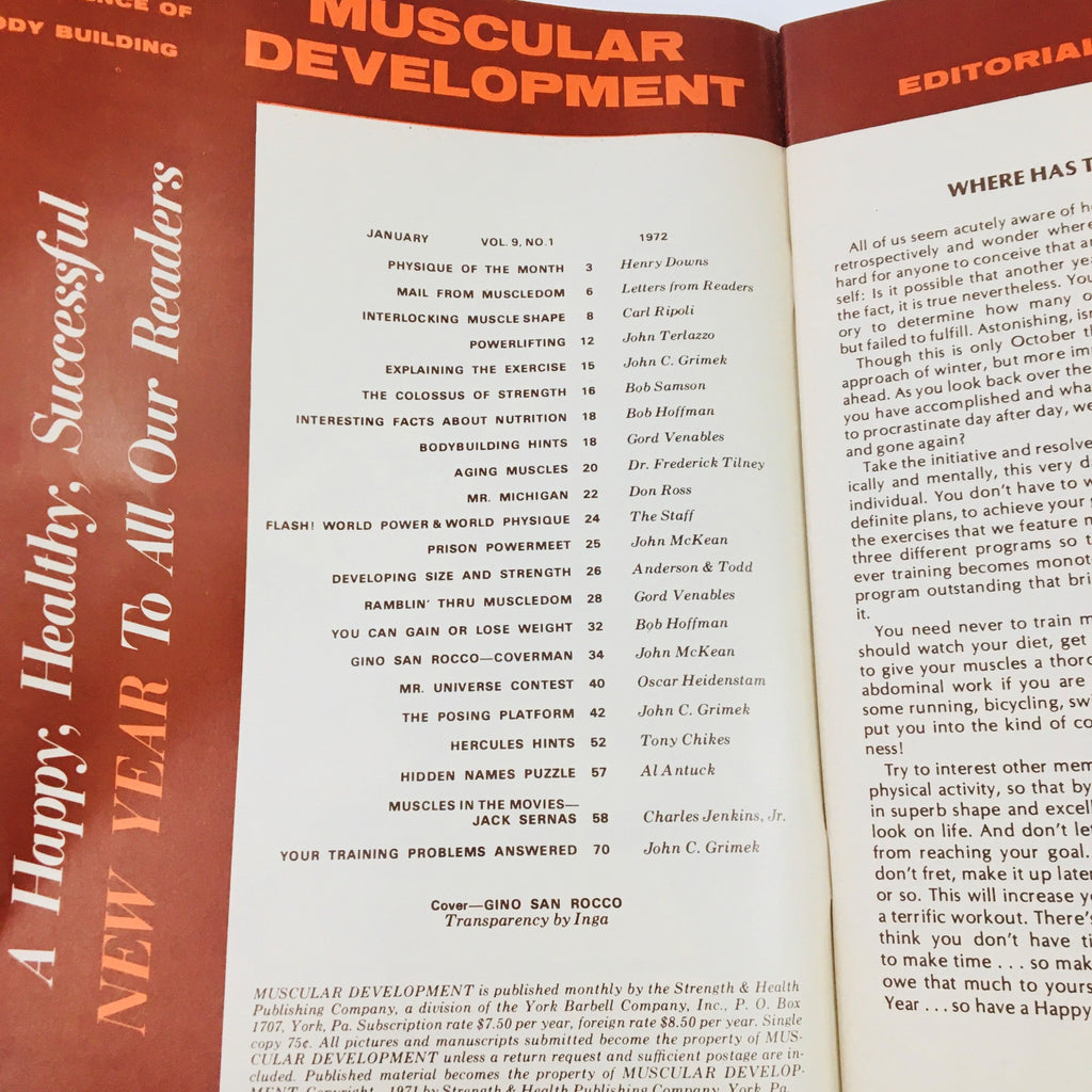 Delve into the world of vintage magazines with this rare edition of Muscular Development Magazine from January 1972. Featuring prominent figures such as Gino Son and Rocco, this collectible issue provides an in-depth look at bodybuilding during an iconic period, capturing the evolution of fitness culture.