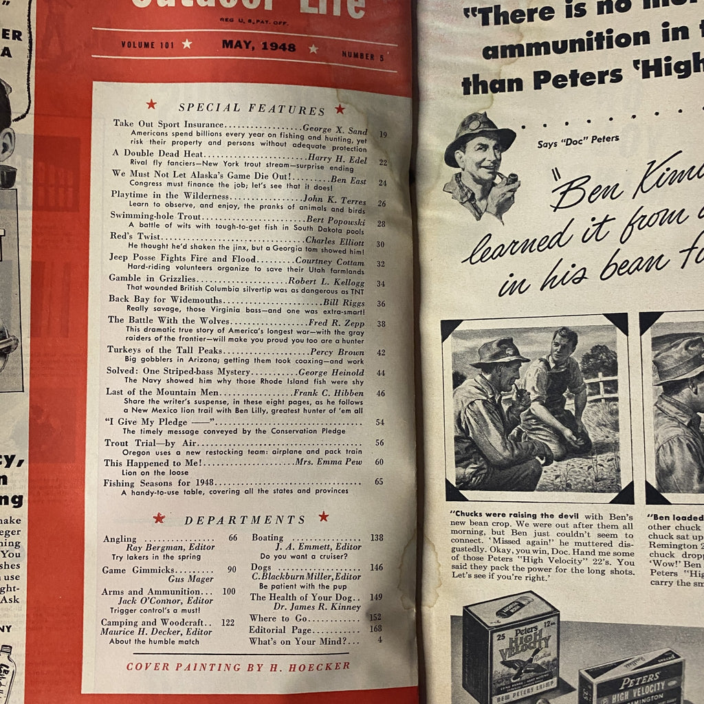 Outdoor Life Magazine – May 1948 (Cover Painting by H. Hoecker) – No Label – GD Interior