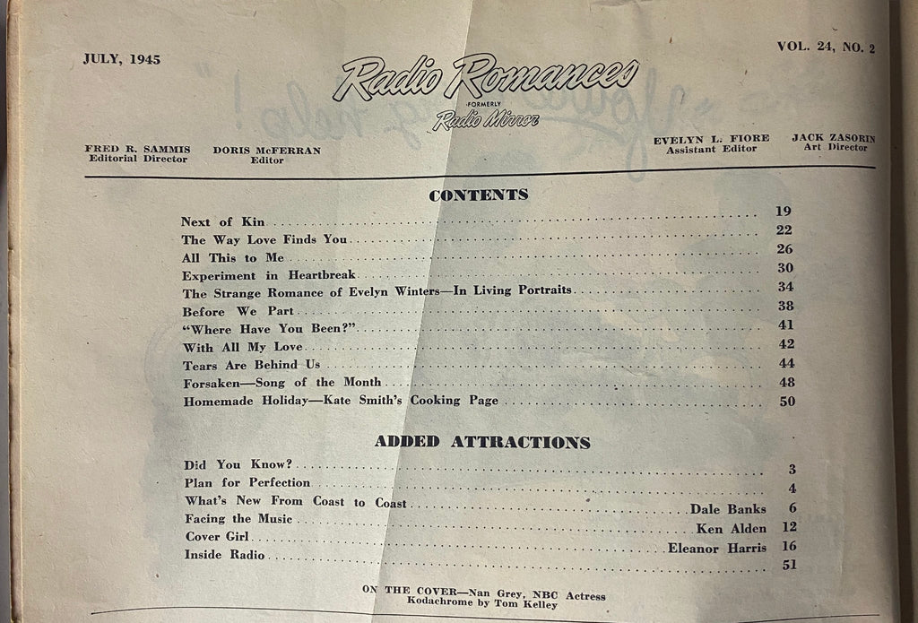 Radio Romances Magazine – July 1945 (Nan Grey Cover, No Label)