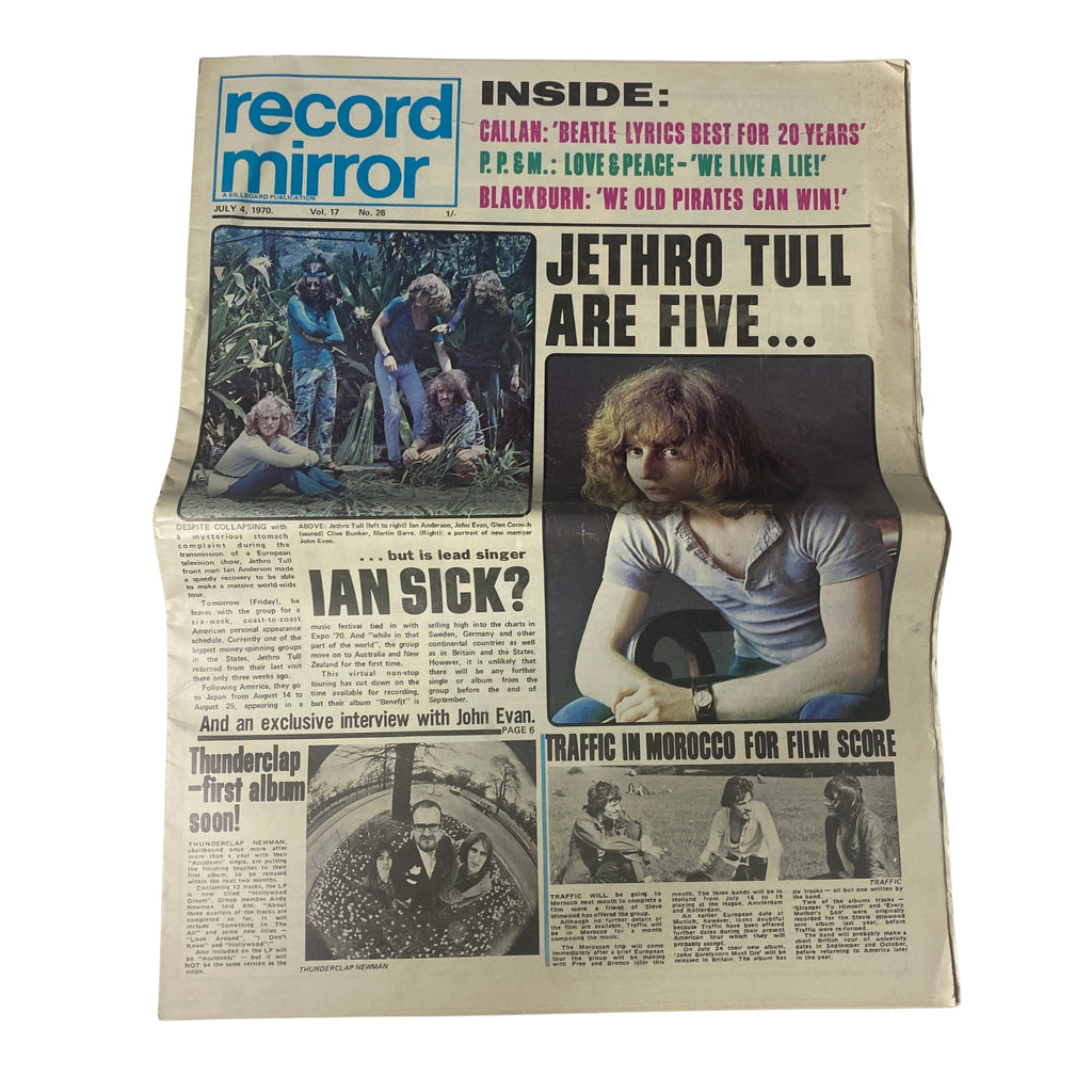 Record Mirror Tabloid Magazine – July 4, 1970 – Vol. 17 No. 26 – Jethro Tull – No Label