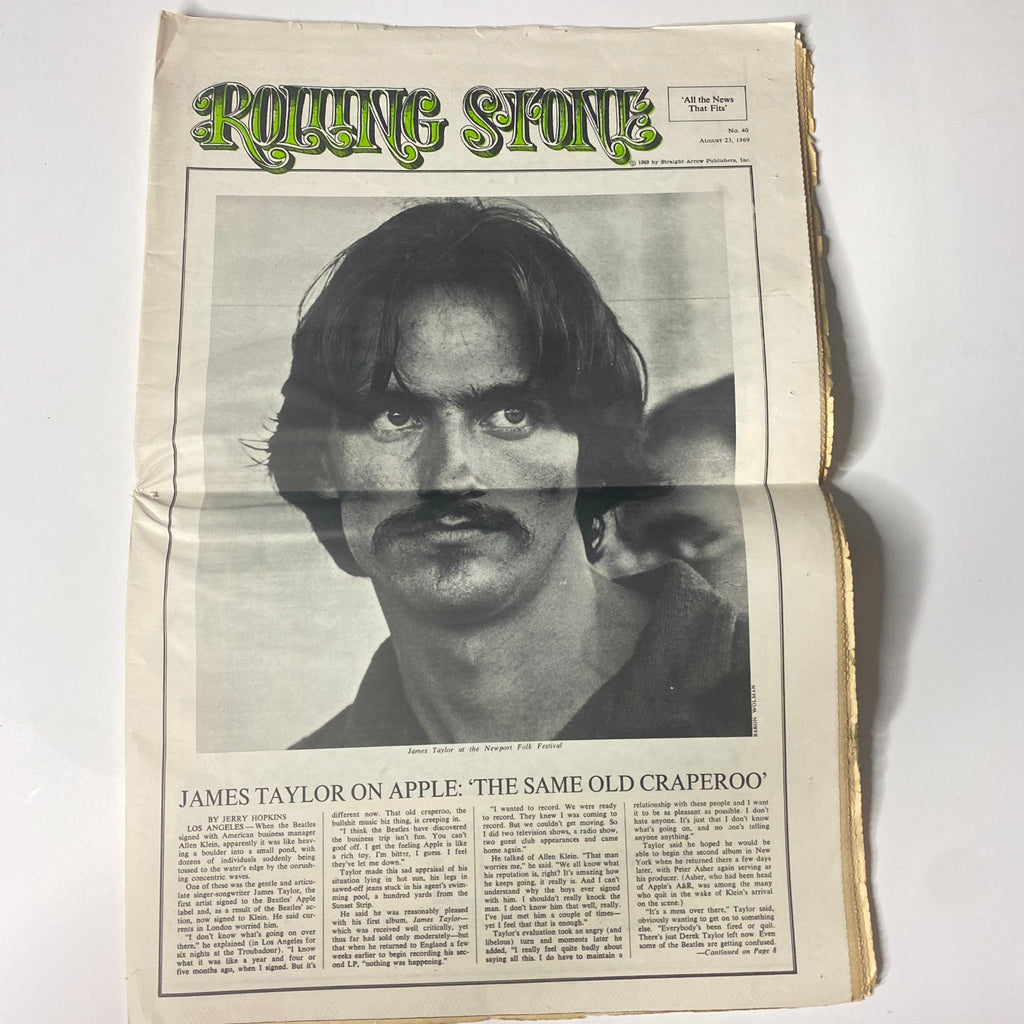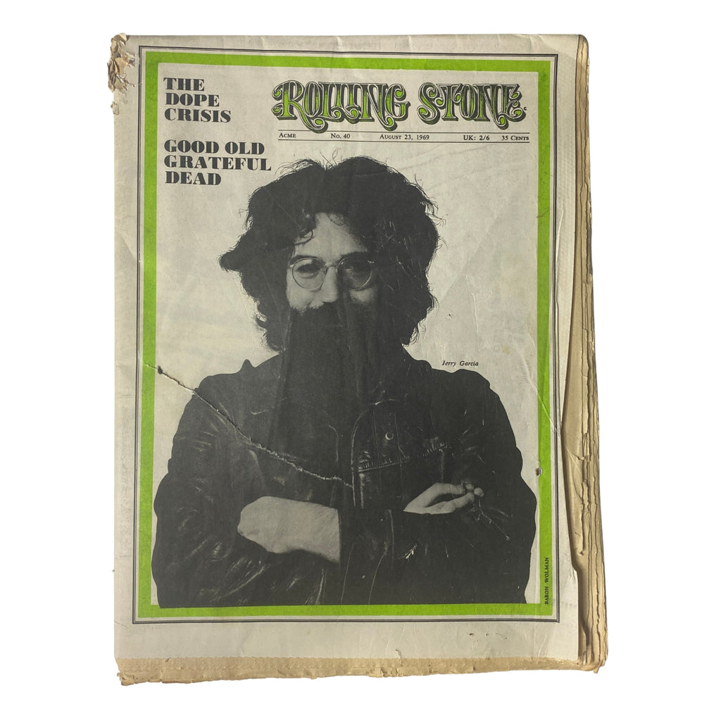 This vintage issue of Rolling Stone Magazine (August 23, 1969) features Jerry Garcia on the cover and includes noteworthy coverage from the height of the counterculture era.