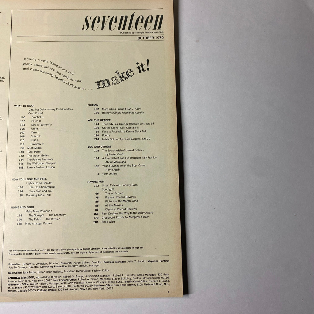 Seventeen Magazine – October 1970 – “The Secret Wish of Unwed Fathers” – No Label – VG