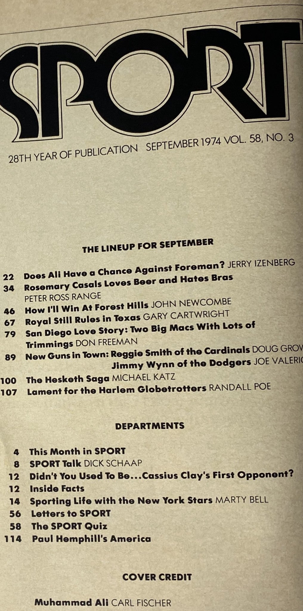 This September 1974 issue of Sport Magazine features Muhammad Ali on the cover, published just weeks before his historic “Rumble in the Jungle” clash against George Foreman. The magazine captures Ali at one of the most pivotal moments of his career, as the boxing world questioned whether he could reclaim the heavyweight crown.