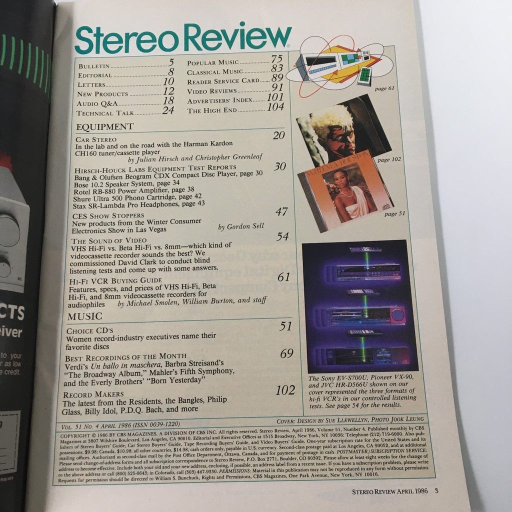 Stereo Review Magazine - April 1986: Hi-Fi Videocassette Recorder's Buying Guide