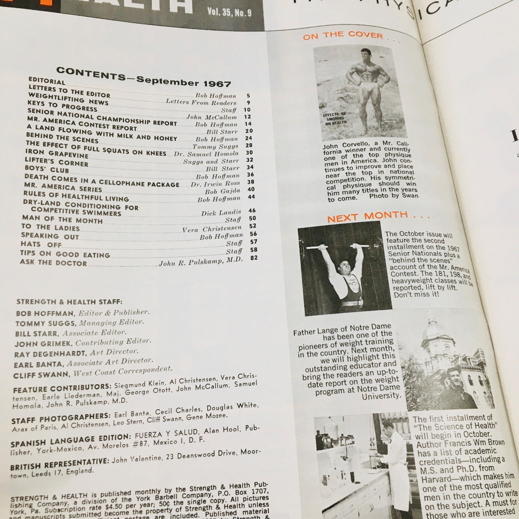 Don't miss your chance to own this piece of fitness history. Add the Strength & Health Magazine September 1967 featuring John Corvello to your collection today!